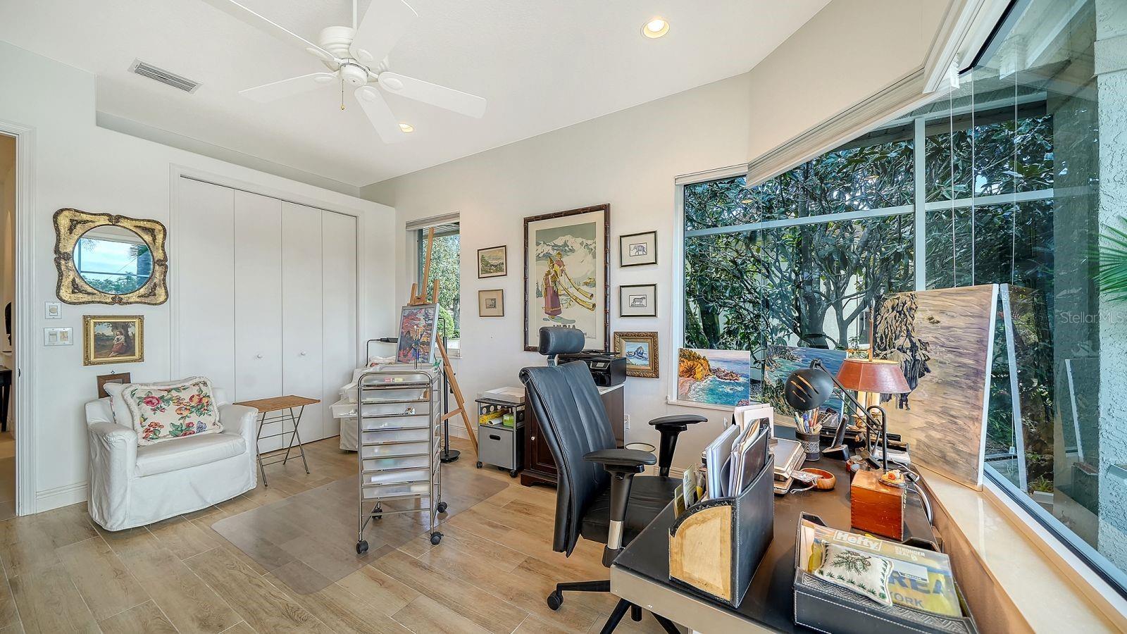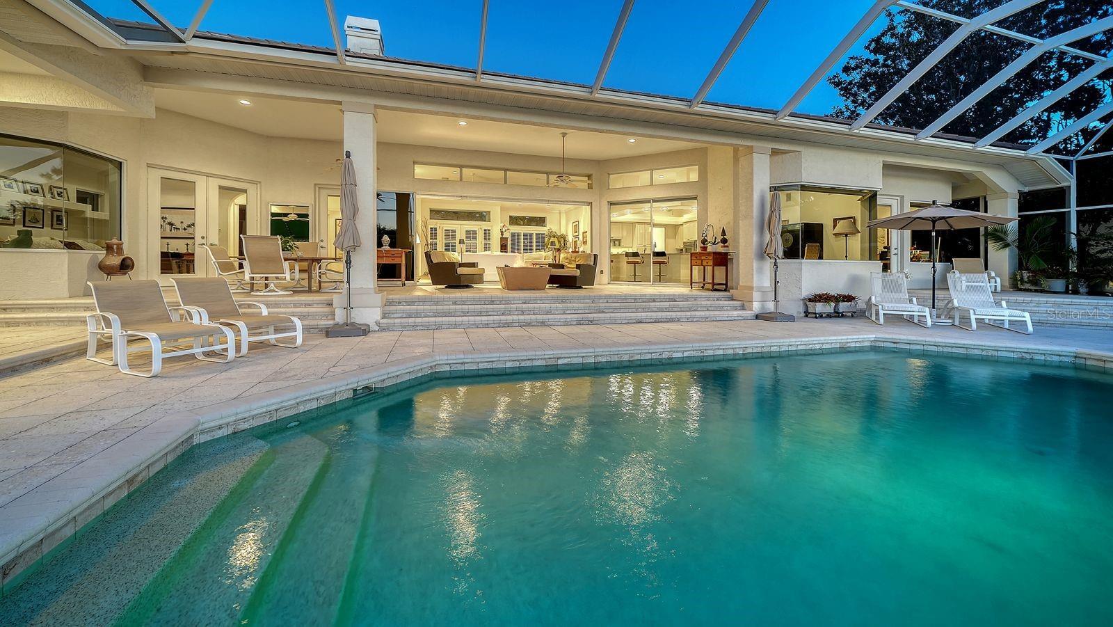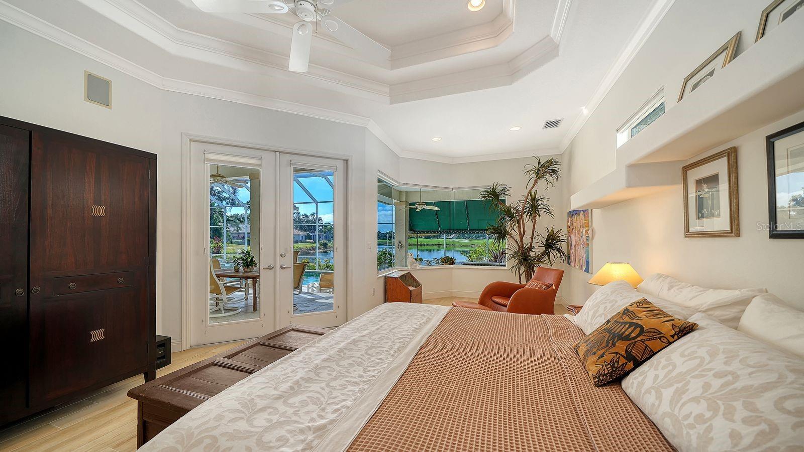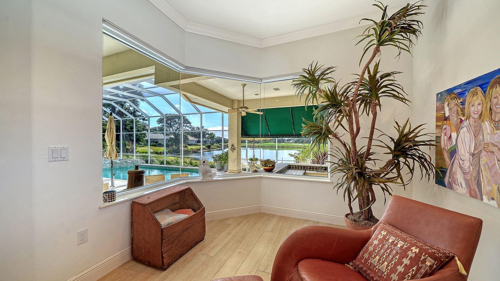 This beautiful John Cannon home has arguably the best water views in the whole of University Park! Boasting 3 bedrooms, 3 baths + den, a 3-car side-return garage, and a huge pool deck, this 3,100-square-foot home is set on 0.4 acre of lushly landscaped property against a backdrop of expansive west-facing lake and golf course views. The home has been fastidiously maintained and beautifully updated. The split-bed floor one-story plan is anchored by a stunning living area with volume ceilings, a striking coral-stone fireplace surround, built-in shelving, and pocket sliders to a huge screened terrace with a sparkling pool and jaw-dropping water views. The primary suite has a large bedroom and spacious seating area overlooking the pool and lake, two walk-in closets, and a spacious bathroom with quartz cabinetry and a vanity desk. The kitchen was remodeled in 2018 with sleek granite countertops, and the appliances were all updated in the past couple of years with Thermador and Wolf fixtures. This home boasts an abundance of natural light in every room which, combined with extra features including high ceilings, a neutral palette, plantation shutters, sunshades, built-in features, and a whole-house generator, represents incredible value in a prime location behind the gates of this sought-after country club University Park Country Club is a gated, resident-owned community offering a 27-hole Ron Garl–designed golf course, eleven lighted Har-Tru tennis courts, four pickleball courts, croquet, a fitness center, and multiple on-site dining options. Miles of tree-lined streets provide opportunities for walking and biking, and a variety of social clubs and organized activities are available to residents. Located approximately four miles from downtown Sarasota, the community provides convenient access to shopping, dining, cultural venues, healthcare, and major transportation routes. University Town Center, with its wide selection of shops, restaurants, and fitness studios, is about two miles away, along with Nathan Benderson Park and nearby Mote Marine facilities. Gulf Coast beaches, SRQ airport, the Ringling Museum, boating options, and St. Armands Circle are all within an estimated 15-minute drive.