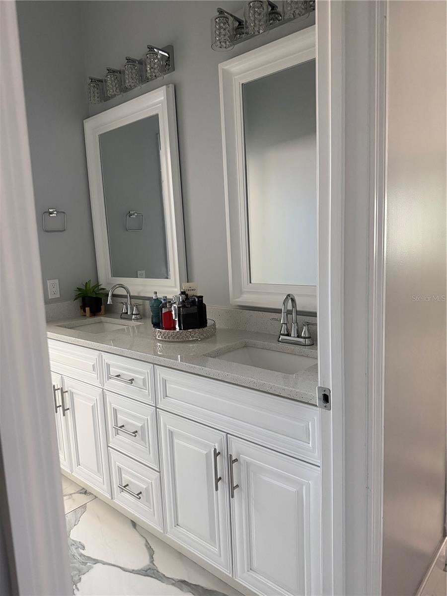 Make your appointment today to see this amazing 5 bedroom and 3-bathroom home with over 3,492 sqft of living space. This house was constructed in 2022 with a metal roof and hurricane-safe windows. The primary bedroom features ample natural light from large windows, providing a comfortable and relaxing atmosphere. The other bedrooms are well-proportioned as well with each bathroom containing Quartz countertops dual sinks, walk-in showers, transom windows, and wood soft-close bathroom cabinetry. The master bathroom contains a jacuzzi, large walk-in shower w/ 2 shower heads, L-sink, and a double stained glass entry door. The living area is spacious and inviting, with an open layout for the versatile furniture arrangement. The backyard features a beautiful, covered seating area with a grill, refrigerator, and more! Also included are 2 HVAC zones, mirrored closet doors, LEDs, and epoxy garage flooring. This home is also close to many Sarasota and Bradenton favorites, including the UTC area, grocery stores, and other shopping areas! The seller prefers to work with their Lender, Rosa Martinez from Guild Mortgage, she is an incredible senior mortgage broker with more than 30 years of experience!