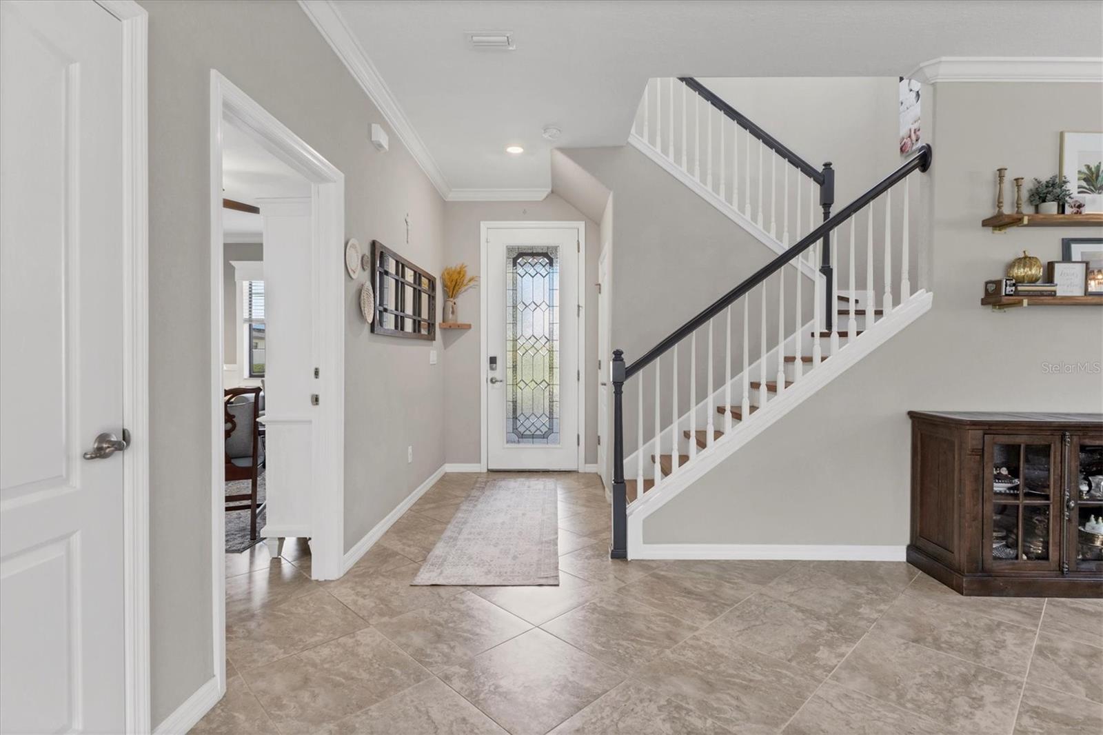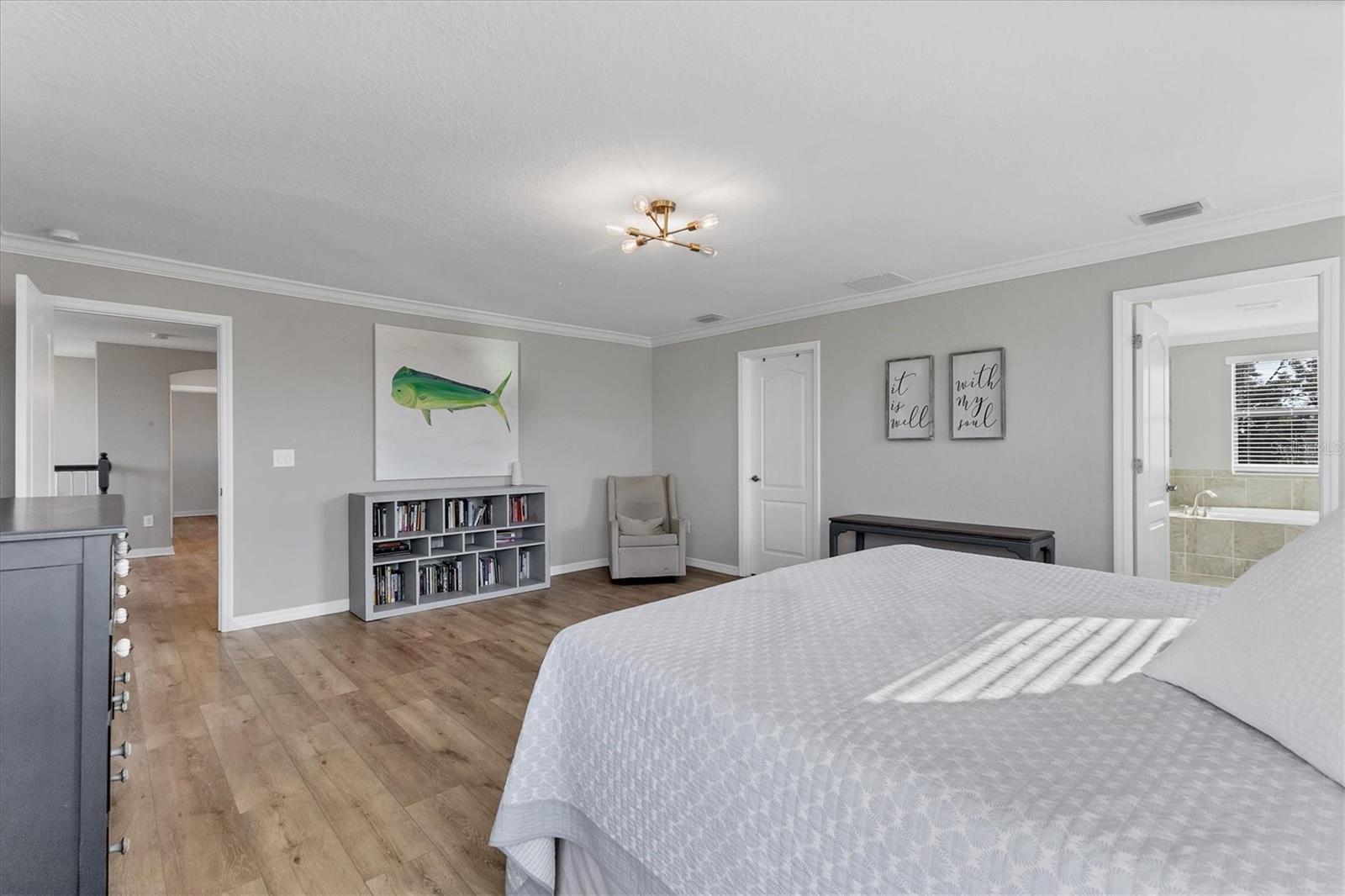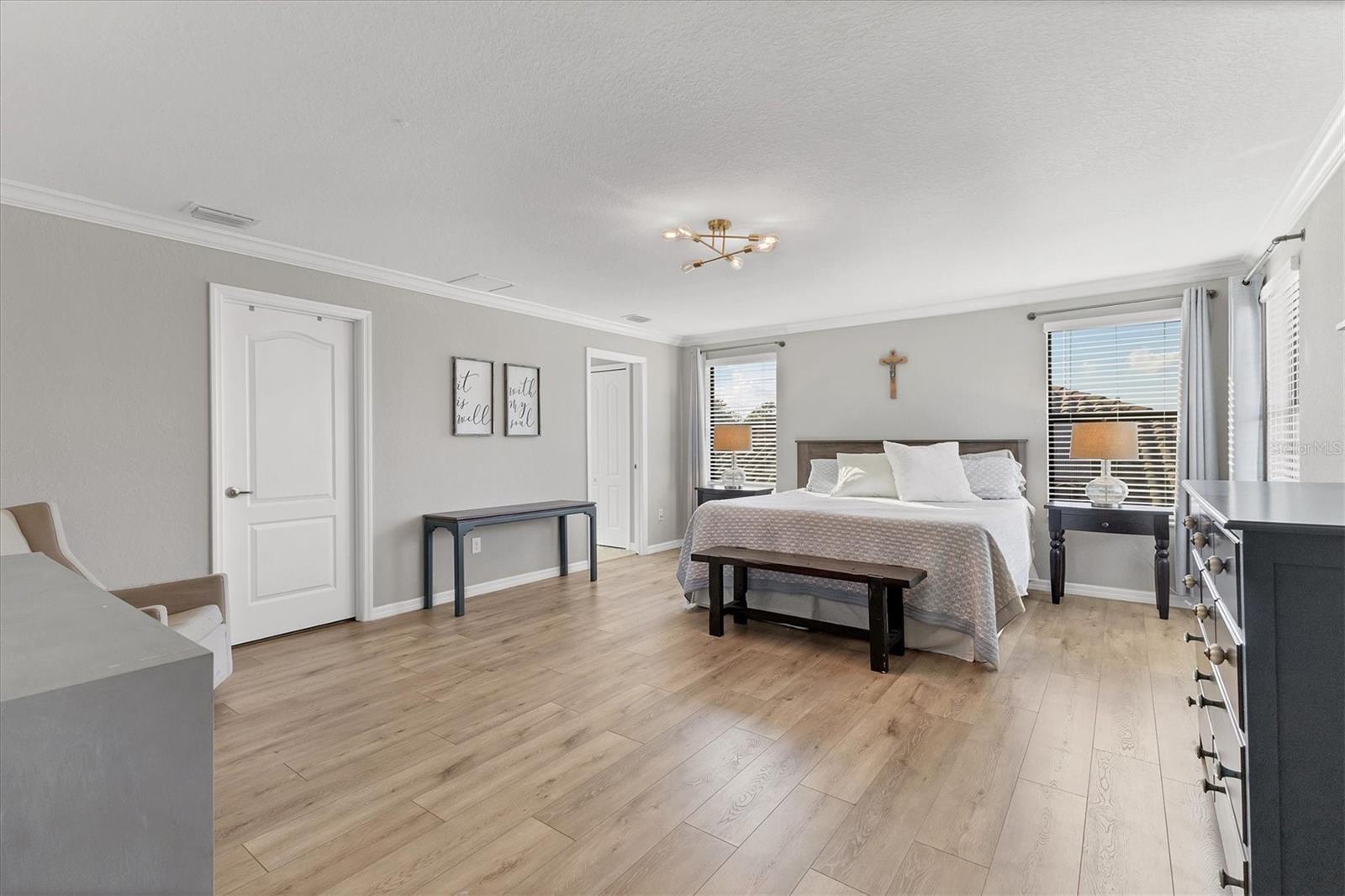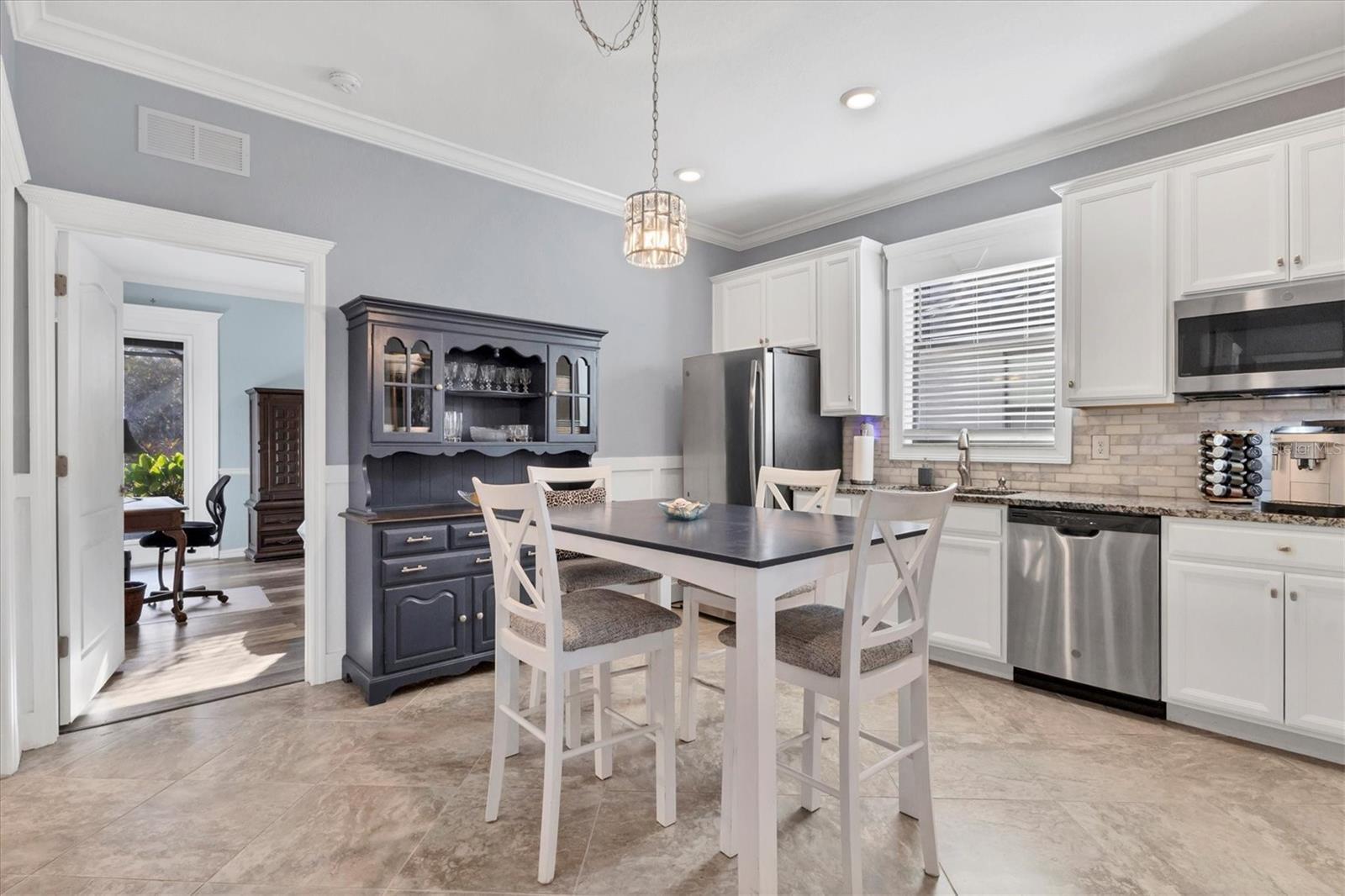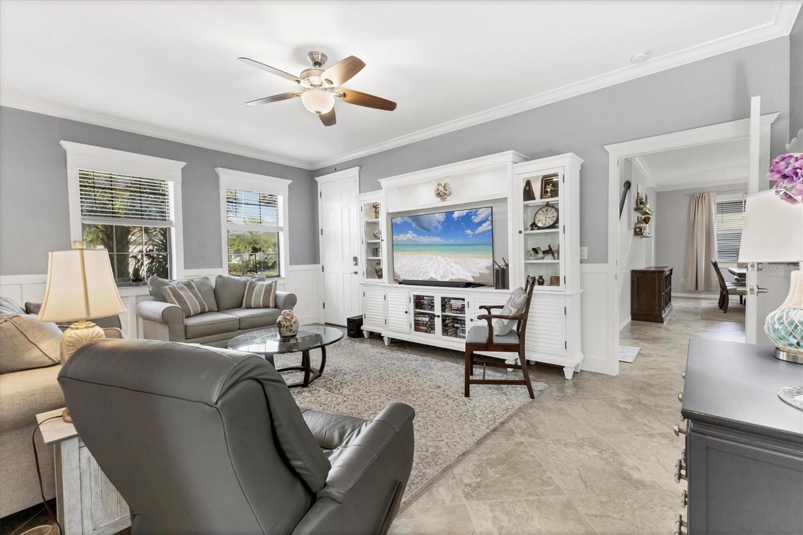 - Ceiling Fans(s), Chair Rail, Crown Molding, Kitchen/Family Room Combo, PrimaryBedroom Upstairs, Stone Counters, Thermostat, Walk-In Closet(s), Window Treatments