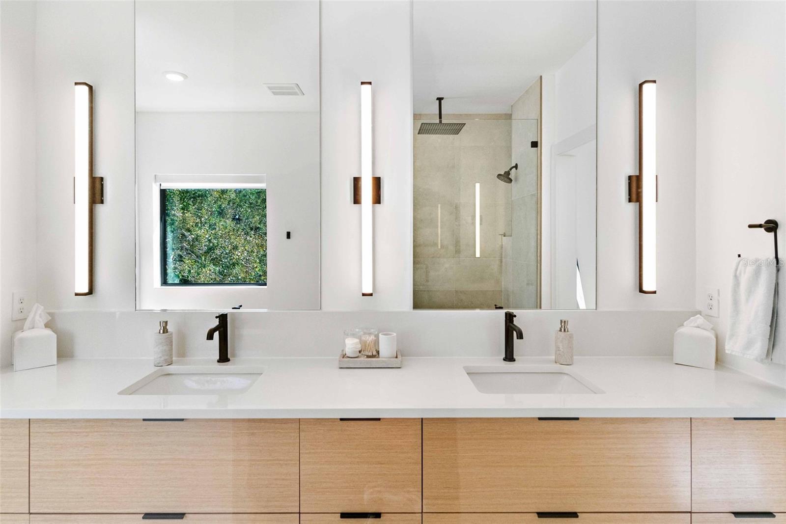 Everything you thought you needed and knew you wanted ~ elevated beyond your wildest expectations. Level up your lifestyle and longevity with these new upgrades: a custom-built professional grade ProTee golf simulator, two person Equinox infrared sauna, and a Renu Therapy outdoor cold plunge tank. This newer construction luxury home in Sarasota is nestled perfectly between Southgate, Arlington Park and Cherokee Park and is walking distance to Southside Elementary school. The entirety of the 5,461 square feet of total living area is a contemporary masterpiece offering expansive and seamless indoor/outdoor living spaces flooded with natural light and subtle sophistication. The exterior boasts a sleek, minimalist design, featuring a blend of clean lines, large glass windows and natural stone. An attractive, welcoming front door opens to a breathtaking, soaring entryway where the striking natural wood floors draw the eye further toward the dramatic, floating staircase flanked by modern metal railings. The state-of-the-art kitchen is equipped with top-tier finishes, including Thermador appliances, a climate controlled 300-bottle wine cellar, custom cabinetry and a massive island draped in quartz countertops. Staying organized and tidy while cooking for you or a crew is simple in the oversized pantry with appliance storage and prep countertops. Entertaining is a breeze with conversation flowing throughout the spacious yet cozy living area. Gaze through the oversized glass windows with views of the tropical courtyard, the invitation to step through the glass sliders to the expansive outdoor patio and backyard oasis. Serve your coastal cuisine indoors or outdoors as the patio offers an additional al fresco cooking space overlooking the spa and pool boasting crystal blue water sprawling between the dual covered patios. Refresh from your dip in the pool in the outdoor shower and cabana bath. After a day of outdoor adventure and relaxation, the nightly feature can take place in the dedicated home theater with a 4k projector and 10 surround sound speakers. This home offers first and second floor primary suites and two additional, generously sized bedrooms. The primary suites offer luxurious, spa-inspired baths while the additional bedrooms each access a full bath. The two-car side load garage is convenient, the professional landscaping and accent lighting in and around the home create an opulent ambiance, while the 20-seer, 4-Zone Infinity HVAC system will keep your cool in the Florida summers. Custom comforts and peace of mind are integrated throughout with a 21-foot elevation above sea level, hurricane-rated impact windows and doors, mosquito misting system, luxury fixtures and finishes, smart home technology and level 5 drywall finish. With ideal proximity to shopping, dining, premier beaches and the best of Florida’s golf courses and outdoor recreation, this dream home offers the perfect blend of modern amenities, casual comfort and the ultimate coastal lifestyle.