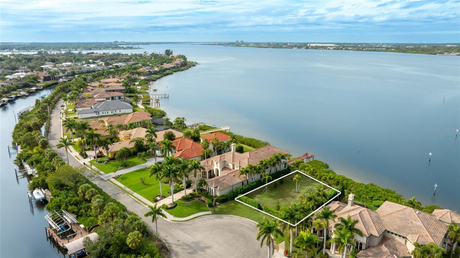 A rare chance to build on one of the last available waterfront parcels on prestigious Hawk Island. This .36 acre cul de sac homesite delivers panoramic views across the Manatee River along with an additional 90 feet of frontage on a protected saltwater canal. Mature palms and manicured landscaping already create a park like setting that frames the wide water backdrop. With direct access to the Intracoastal Waterway and Gulf, the location is ideal for boating and waterfront living. This parcel offers two ways to create your ideal dock setup. The deeded portion of the property across the cul de sac grants the option to build a dock along the protected canal, while the backside of the homesite allows you to construct a dock directly on the open water for immediate access to the river and beyond. Hawk Island is a gated and guard secured enclave of custom luxury homes, providing a private and exclusive environment. The lot is cleared, maintained, and ready for construction with public utilities in place, and a survey is available. The community provides convenient access to I 75, placing Sarasota, Lakewood Ranch, St Pete, Tampa, and Gulf beaches within easy reach. Shopping, dining, parks, marinas, and daily conveniences are all nearby.