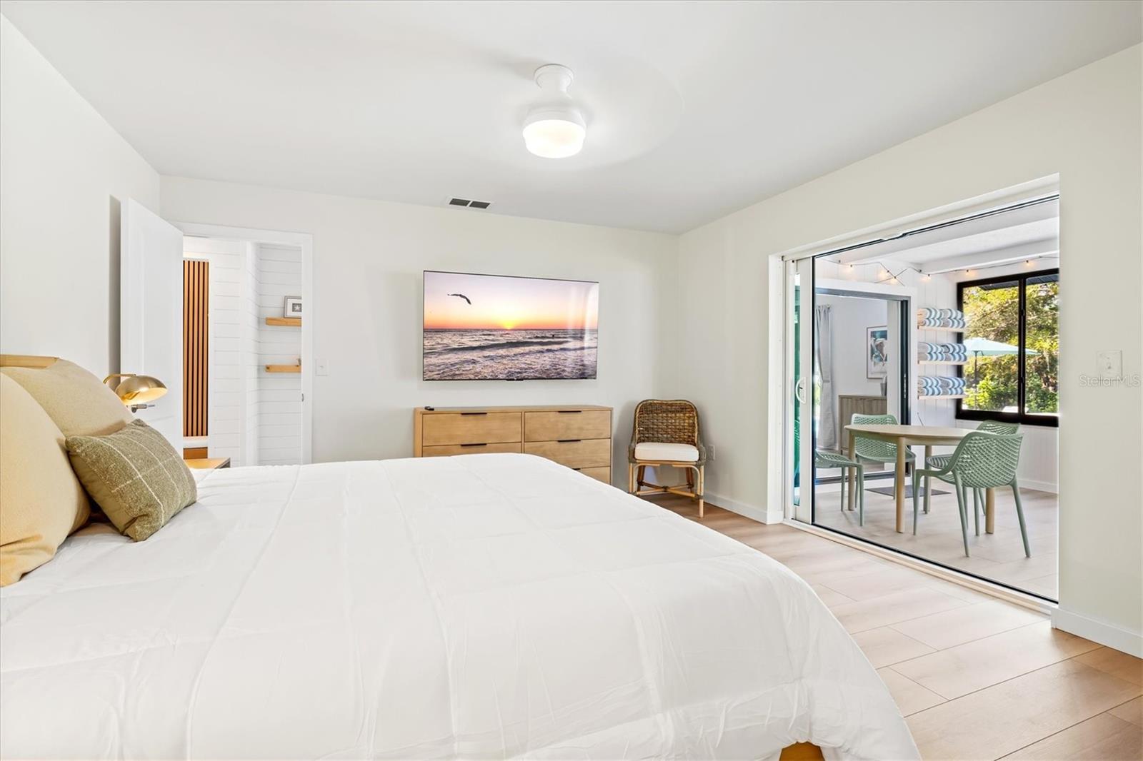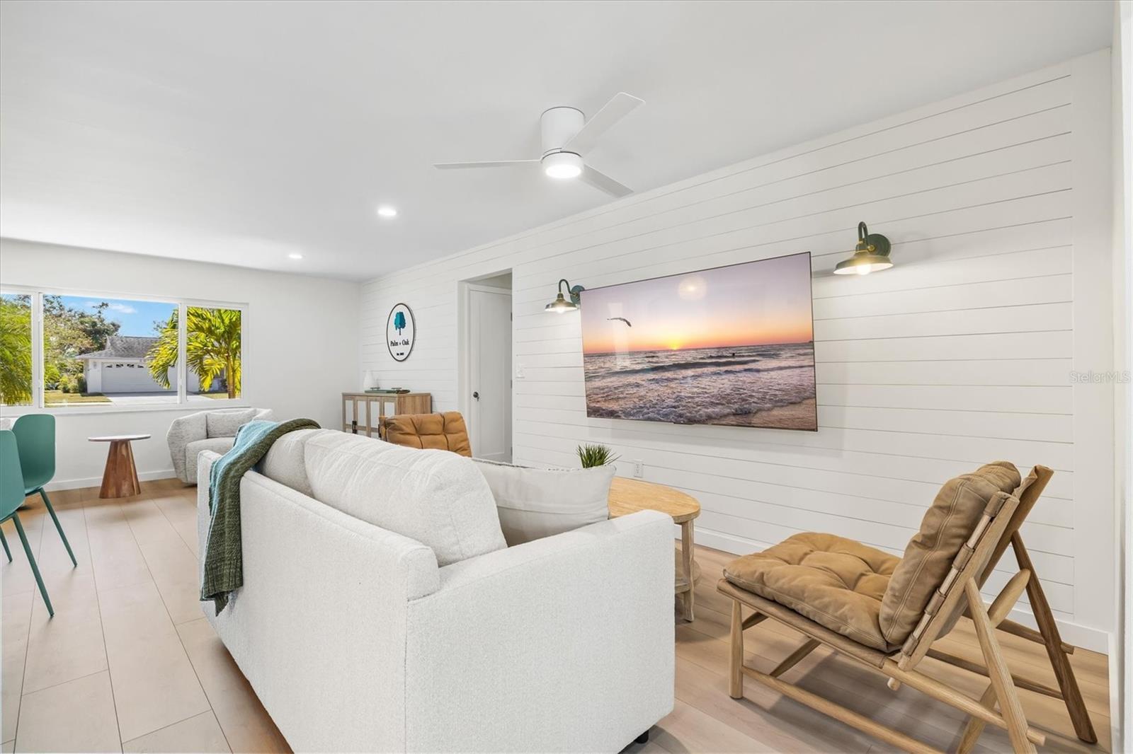 Welcome to Palm & Oak, an expertly curated turnkey rental unlike any other in Sarasota w/ direct access on 2 sides to the coveted Arlington Park. This fully renovated Coastal Pool & Spa home offers nearly 2000 sq ft of living space on a huge 1/3 acre lot w/ vast park views & direct park access from your private fenced backyard. Just minutes from Siesta Key Beach & Downtown Sarasota, this property offers an A+ location & a resort style pool & spa that rivals local hotels. Wake up every morning & watch the City of Sarasota come alive just outside your back door w/ park views as far as the eye can see. Sip your coffee from the temperature controlled sunroom or elevated pool deck & hear the sounds of nature, watch runners go by on the jogging path & owners playing fetch w/ their pups w/ the park fountain in the distance. Palm & Oak was fully renovated from top to bottom w/ vacationing guests in mind. The vibe is coastal & elegant w/ shiplap walls, white oak accents & handcrafted oak & rattan furniture. The floor plan is ideal w/ the master suite on its own wing of the house featuring an en suite designer bathroom, walk in closet, a 60" flat screen TV & sliders w/ access to the furnished sunroom & pool deck beyond. The guest wing features 2 additional bedrooms & a designer bathroom. The entryway of the home offers a mudroom w/ hanging space & an upholstered storage bench. Just off the entry area is a living room w/ swivel chairs & side table, a console table full of family board games & a round table for gathering that has equal viewing of the 75" family room tv & the front of the house onto Hyde Park Street. The living room sofa doubles as a queen pull-out sleeper & is accompanied by 2 buttery genuine leather chairs & a coffee table. The kitchen is at the heart of the house & offers SS appliances, white quartz countertops & a breakfast bar w/ 3 counter stools. The shiplap ceiling & champagne bronze accents make the kitchen feel both warm & luxurious.The kitchen looks out to the dining room & pool & park beyond. The dining room features a large oak table w/ seating for 8 & offers a dedicated workspace, coffee bar & adult bar set up for entertaining. Access to the pool can be had from the dining room sliders or you can exit to the 4-season air conditioned sunroom where you will find a sectional sofa, outdoor kitchen & additional table for games or conversation. Stepping outside onto the pool deck you'll instantly know you've made the right decision to stay at Palm & Oak. The pool is the largest you'll come across in a residential location w/ an envelope of 32 ft long and 21 wide (over 600 sq ft) which includes 2 large sun shelves, an elevated heated spa w/ waterfall feature, a 14 by 32 swim lane & a bench seat w/ bar stools. Stairs from the elevated pool deck down to the yard lead to a private gate that opens out directly onto the grounds of Arlington Park which offers a 1/2 mile jogging path, 2 dog parks, an aquatic center w/ Olympic size swimming pool, outdoor fitness center, playground, & indoor & outdoor basketball courts. The backyard features a gorgeous Laurel Oak Tree & a cluster of mature Sabal Palms which are all up-lit at night as an homage to our house name "Palm & Oak". Additional path lights & a hedge of Pitch Apple plants line the back of the elevated pool deck to prevent falling. The West side of the pool deck offers a regulation size grassy cornhole court & outdoor dining area w/ an umbrella & nearby propane grill.