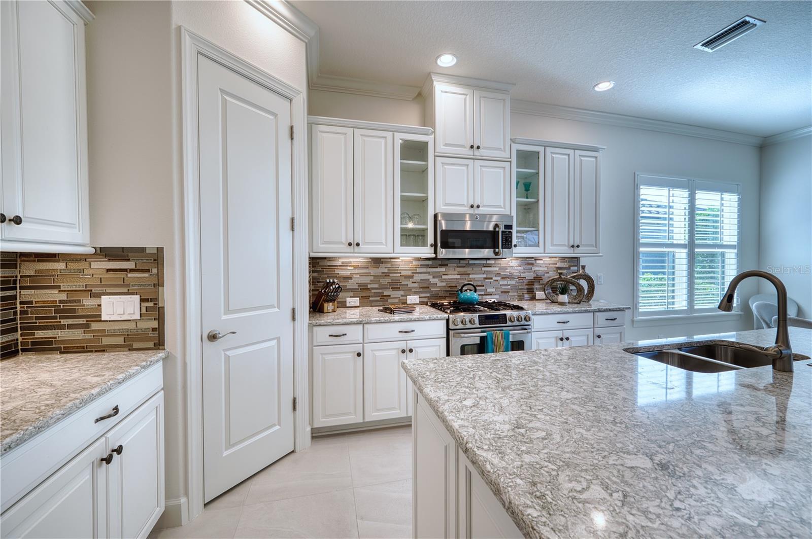 Impeccably designed Farnese model home with every bedroom featuring its own ensuite bath. The open kitchen boasts GE stainless steel appliances, white cabinetry, quartz countertops, glass tile backsplash, walk-in pantry, and a large island with seating for four, plus an eat-in space. The dedicated dining room could be converted to a home office or den. Elegant details include crown molding, tray ceilings, plantation shutters, and tile floors throughout. You will appreciate the monitored security system and hurricane-impact windows for your peace of mind. The spacious primary suite offers a bay window, while the bath features dual sinks, a walk-in shower, and a private water closet. Additional highlights include a tankless water heater, central vacuum, and a large laundry room with a utility sink and abundant cabinetry. Enjoy the golf course view on the screened lanai with a full outdoor kitchen and gas fireplace. The garage is finished with epoxy flooring. This home blends luxury, convenience, and durability — ready for you to move in and enjoy. Esplanade at Lakewood Ranch is an amenity-rich 18-hole golf community featuring the Barrel House Bistro Bar and the poolside Bahama Bar. There are two clubhouses, two resort-style pools, and a resistance pool. Workout in the state-of-the-art fitness center or work up a sweat on the tennis or pickleball courts. The Koquina Salon offers a variety of services ranging from haircuts to therapeutic massages and facials. Lakewood Ranch is the #1 multi-generational planned community in the country. This home is perfect for those seeking a resort-style living experience in a vibrant community.