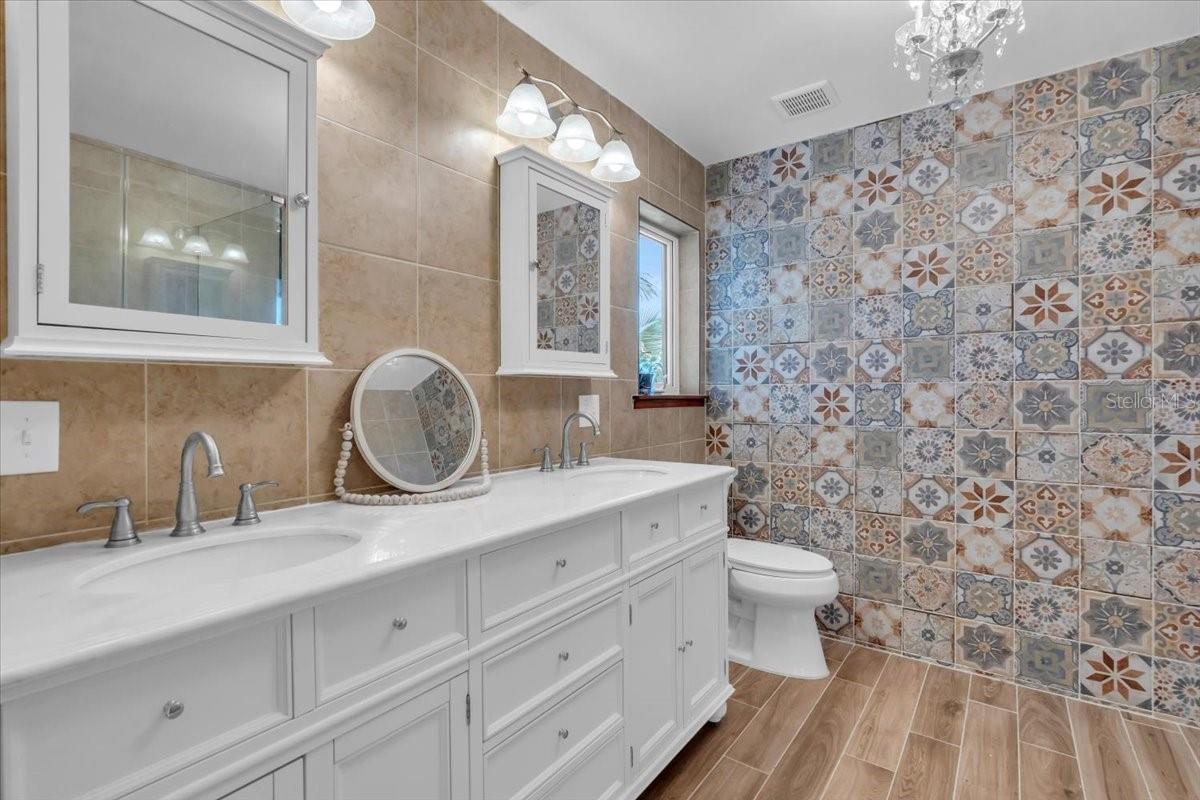 ISLAND LIVING ON WATERFRONT GRANDEUR—Experience unparalleled privacy and serenity on Florida’s Hidden Gem, Terra Ceia Island, with this exquisitely renovated Key West–inspired residence at 1015 Bayshore Drive. This home parcel creates an extraordinary waterfront estate offering expansive space, unmatched flexibility, and a rare opportunity to curate your own island retreat without HOA or deed restrictions. Perfectly blending timeless architecture with elevated modern design, this residence welcomes you with a grand covered porch and double French doors leading into a soaring great room adorned with exposed wood beams, a striking wood-burning fireplace with carved mantle and stone surround, and sophisticated built-in cabinetry. With 4 spacious bedrooms, 4.5 baths, and a bonus room off the primary suite, the layout offers luxury, comfort, and versatility at every turn. Three guest suites feature beautifully redesigned ensuite baths with artisan tilework and premium finishes. The primary suite is a true sanctuary, showcasing vaulted beam ceilings, an oversized walk-in closet, and a spa-inspired bath complete with freestanding soaking tub, oversized walk-in shower, tiled feature wall, and an abundance of natural light. The adjoining bonus room—with five grand windows and private deck access—creates the perfect retreat for a home office, fitness studio, art room, or nursery overlooking the shimmering lake. The fully reimagined chef’s kitchen impresses with a panoramic picture window, quartz countertops, soft-close custom cabinetry, new appliances, farmhouse sink, under-cabinet lighting, and a center island ideal for gathering. A dedicated laundry room sits just off the kitchen. Throughout the home, you'll find finely curated details including tray ceilings, elegant stair-risers, designer hardware, and custom millwork. A private lift connects the ground level to the main living floor for added convenience. The ground level offers a versatile game room with bath, entertainment quarters, abundant storage, and a 2-car garage with new epoxy flooring. Outdoors, multiple decks invite year-round enjoyment, while new landscaping, pebble pathways, gated entries, and charming light posts enhance the estate’s tranquil ambiance. Peace of mind comes from a seamless metal roof and hurricane-impact windows and doors. The .53-acre homesite provides remarkable freedom—ample room for RVs, boats and trailers. Enjoy the stunning waterfront fruit garden or enjoy relaxing days fishing in your private lake surrounded by the mesmerizing sunsets over your expansive estate. All of this is set within Terra Ceia Island, a quiet and enchanting coastal enclave known for its natural beauty and unbeatable hidden yet central location—just minutes to conveniences, 8 minutes to shopping and dining, 15 minutes to Downtown Bradenton, 25 minutes to Downtown St. Petersburg, and easy access to Sarasota and Tampa. Nearby natural treasures include Terra Ceia Preserve State Park, Madira Bickel Mound State Archaeological Site, and Emerson Point Preserve. A 3-acre waterfront park with playground, pavilion, and boat ramp is also available through an optional $250 annual Civic Association membership. Want a slice of paradise, like Key West? Look no further! This is your chance, schedule your private showing today!