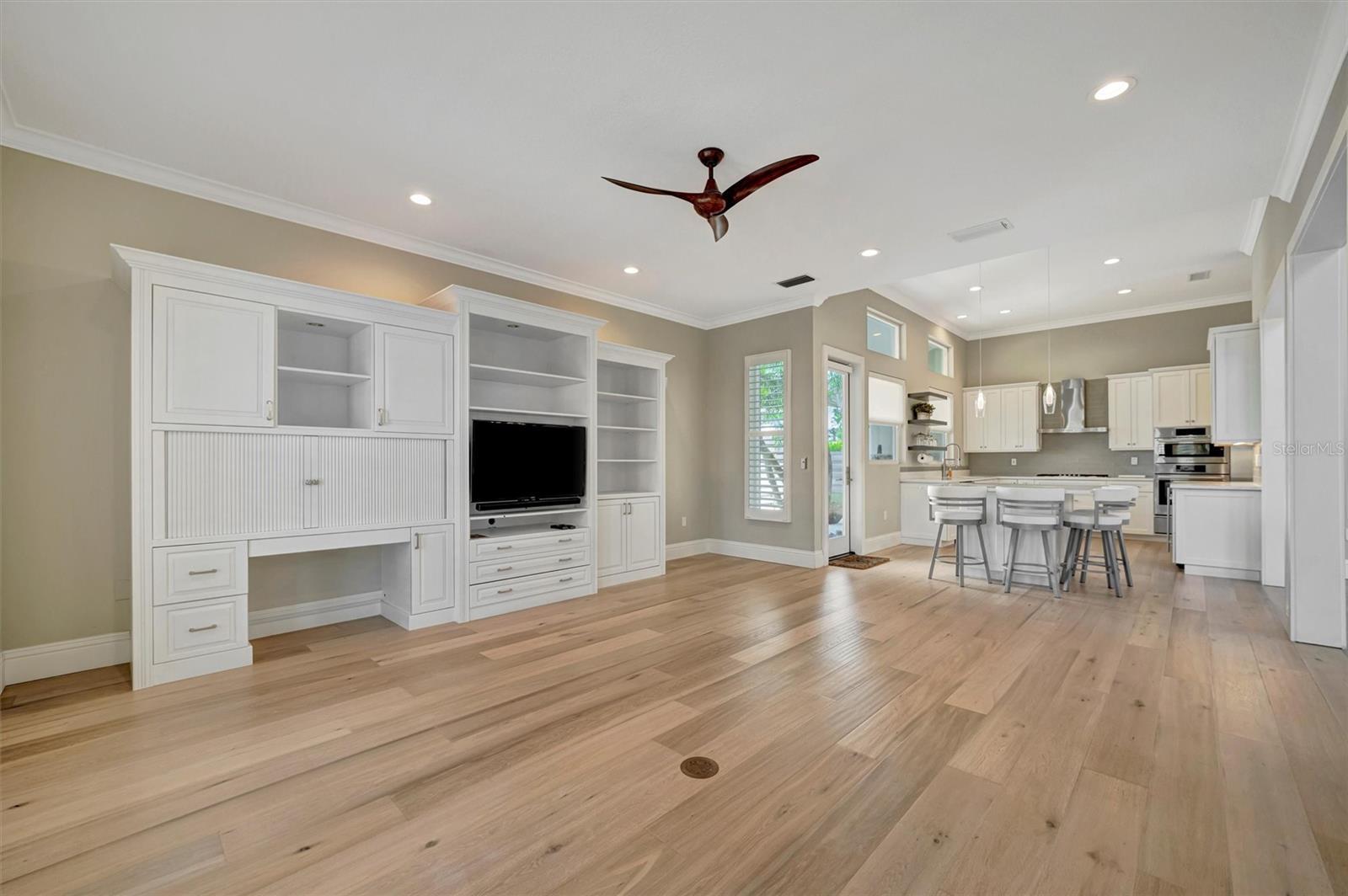 - Built-in Features, Cathedral Ceiling(s), High Ceilings, Kitchen/Family Room Combo, L Dining, Open Floorplan, Primary Bedroom Main Floor, Split Bedroom, Stone Counters, Vaulted Ceiling(s), Walk-In Closet(s), Window Treatments