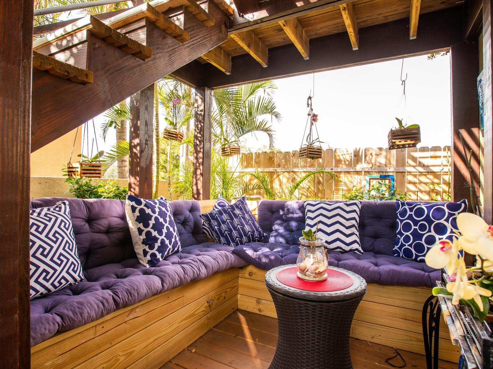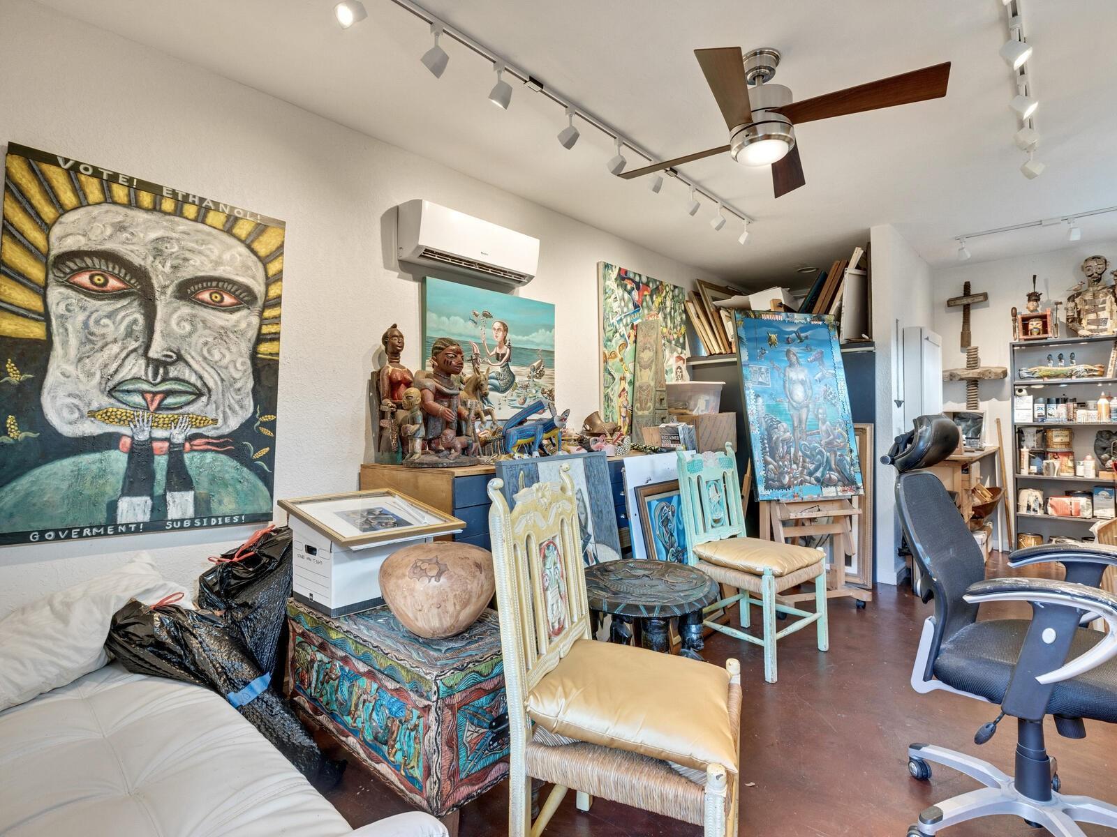 Investment or full time living, this beautiful and unique compound in the heart of Sarasota is just steps away from the downtown, hospital, shopping, and the bayfront is the coveted West of the Trail Hudson Bayou Neighborhood. This one a kind home with a separate art studio and studio apt in the back consists of a beautiful and cozy main house with 2 bdr, 2 baths, dining, updated kitchen with granite countertops and stainless steel appliances was designed and well loved by its owners, one a Ringling Art graduate and both longtime Sarasota residents, for a full time retreat over the past 15 years. Custom details such as ceramic tile, hardwood floors, with the main house completely replumbed just recently in 2025. In 2020, a second building was custom built in the back to allow for an art studio on the first level and regular stairs, as well as a custom-made spiral staircase lead you to a fantastic studio apt/"She Shed" on the second floor for guests and/or Air BNB possibilities in the future. Continue on and gather on the rooftop for views of the city and fireworks with a sneak peak of Hudson Bayou depending upon neighbor's foliage height. No flooding or damage from past hurricanes. This home remained high and dry and has been lovingly updated and maintained. Home and apt Air BNB vs seasonal rental potential. Rental income potential estimates available.