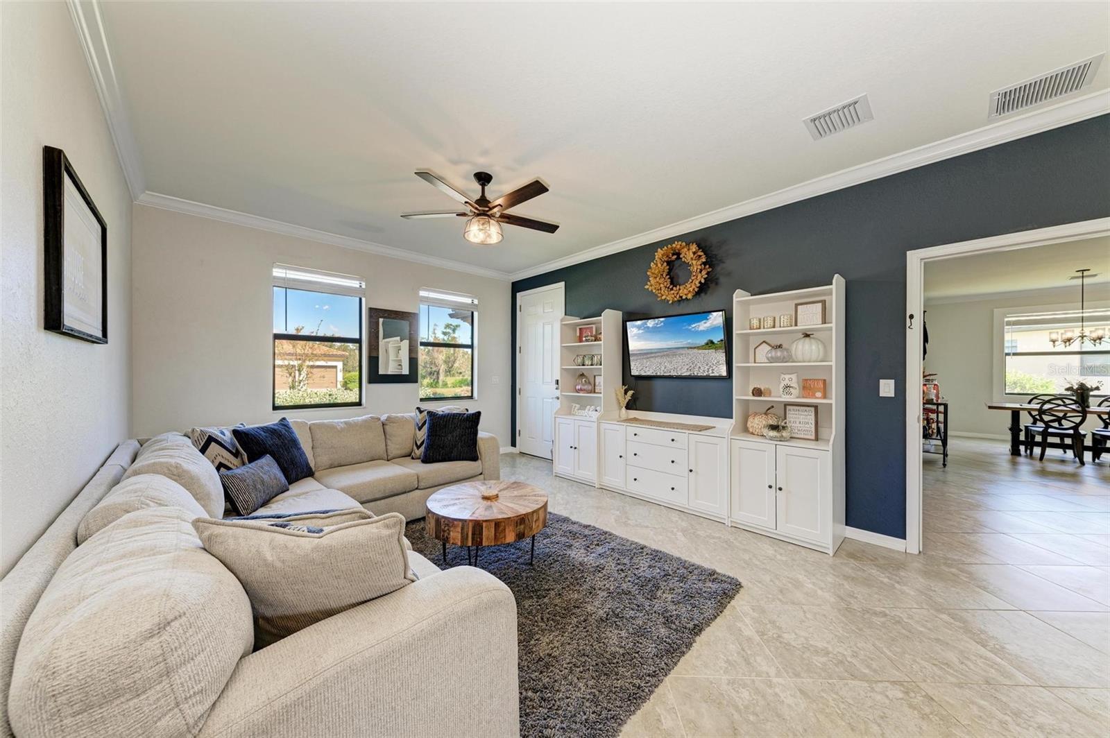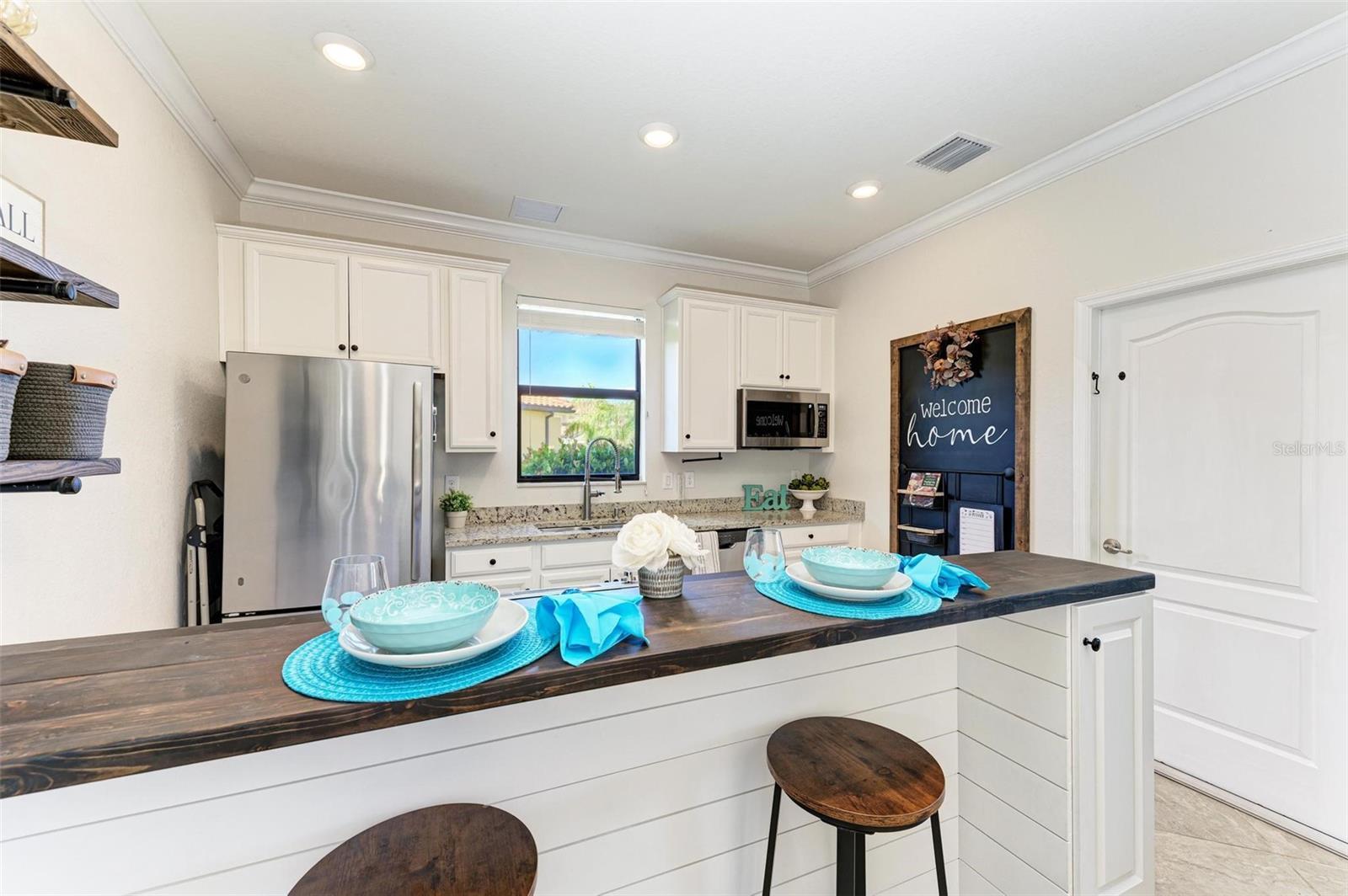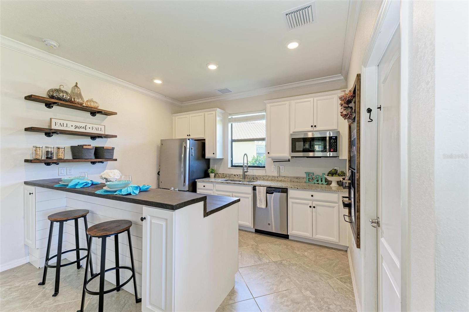 - Built-in Features, Ceiling Fans(s), Crown Molding, Eat-in Kitchen, High Ceilings, Smart Home, Solid Wood Cabinets, Stone Counters, Thermostat, Walk-In Closet(s), Window Treatments