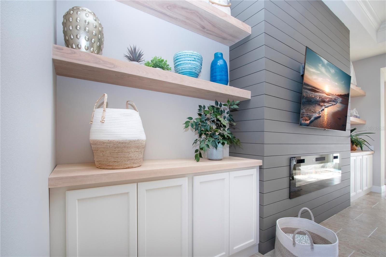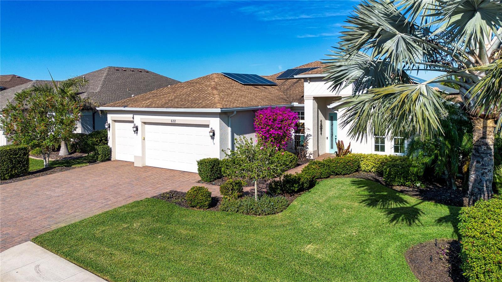 Welcome to this beautifully upgraded Sam Rodgers Bellisimo I model, where thoughtful design, luxury finishes, and serene water views come together seamlessly. Perfectly positioned to capture a long lake and pond view, this home offers a peaceful backdrop that can be enjoyed from the large extended paver lanai, complete with a built-in spa featuring a waterfall and gas heater, a gas firepit, and a fully equipped summer kitchen—ideal for relaxing evenings and entertaining year-round. Inside, you’ll immediately notice the abundance of natural light, enhanced by energy-efficient impact windows and a sliding glass door. The open living area showcases a stunning built-in bump-out wall with an electric fireplace, accented by shiplap, custom shelving, and cabinetry, creating a warm yet sophisticated focal point. Porcelain tile flows through the main living areas, while luxury laminate flooring in the bedrooms ensures a completely carpet-free home. The gourmet kitchen is both stylish and functional, featuring Bosch appliances, an induction cooktop range with convection oven, and a large wraparound island with additional storage, perfect for hosting or everyday living. Architectural details elevate every space, including tray ceilings in the living room, dining room, foyer, and primary bedroom, along with custom light fixtures throughout. The primary suite offers a refined retreat, highlighted by a custom wall treatment in the master bathroom water closet, solid surface countertops in all bathrooms, and elegant finishes throughout. Additional conveniences include laundry room cabinetry, a paver driveway, and immaculate landscaping that reflects true pride of ownership. Adding to the home’s exceptional value are fully paid solar panels, resulting in an average electric bill of approximately $35 per month, blending luxury with impressive energy efficiency. This impeccably maintained home delivers comfort, elegance, and efficiency in every detail—an extraordinary opportunity to enjoy Florida living at its finest.But the appeal doesn't end there; GreyHawk Landing offers a stellar community experience. Enjoy access to a clubhouse, two community pools (including a lagoon-style pool with water slides and a waterfall), playgrounds, a fitness center, pickleball courts, tennis courts, a basketball court, baseball/soccer fields, fishing spots, and 5 miles of nature trails for wildlife enthusiasts. GreyHawk Landing's location is unbeatable, with easy access to I-75, top-rated Lakewood Ranch schools, a new Publix shopping center, Lakewood Ranch restaurants and Main Street, Ft. Hammer Boat Ramp/Park, and much more. Experience the finest of Florida living in this exceptional home within a vibrant community. Don’t miss the opportunity to own this exuisite home at 622 Rosemary Circle!