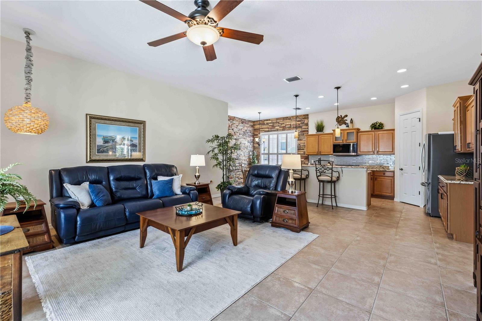 - Attic Ventilator, Built-in Features, Ceiling Fans(s), Eat-in Kitchen, Kitchen/Family Room Combo, Primary Bedroom Main Floor, Solid Surface Counters, Split Bedroom, Stone Counters, Walk-In Closet(s), Window Treatments