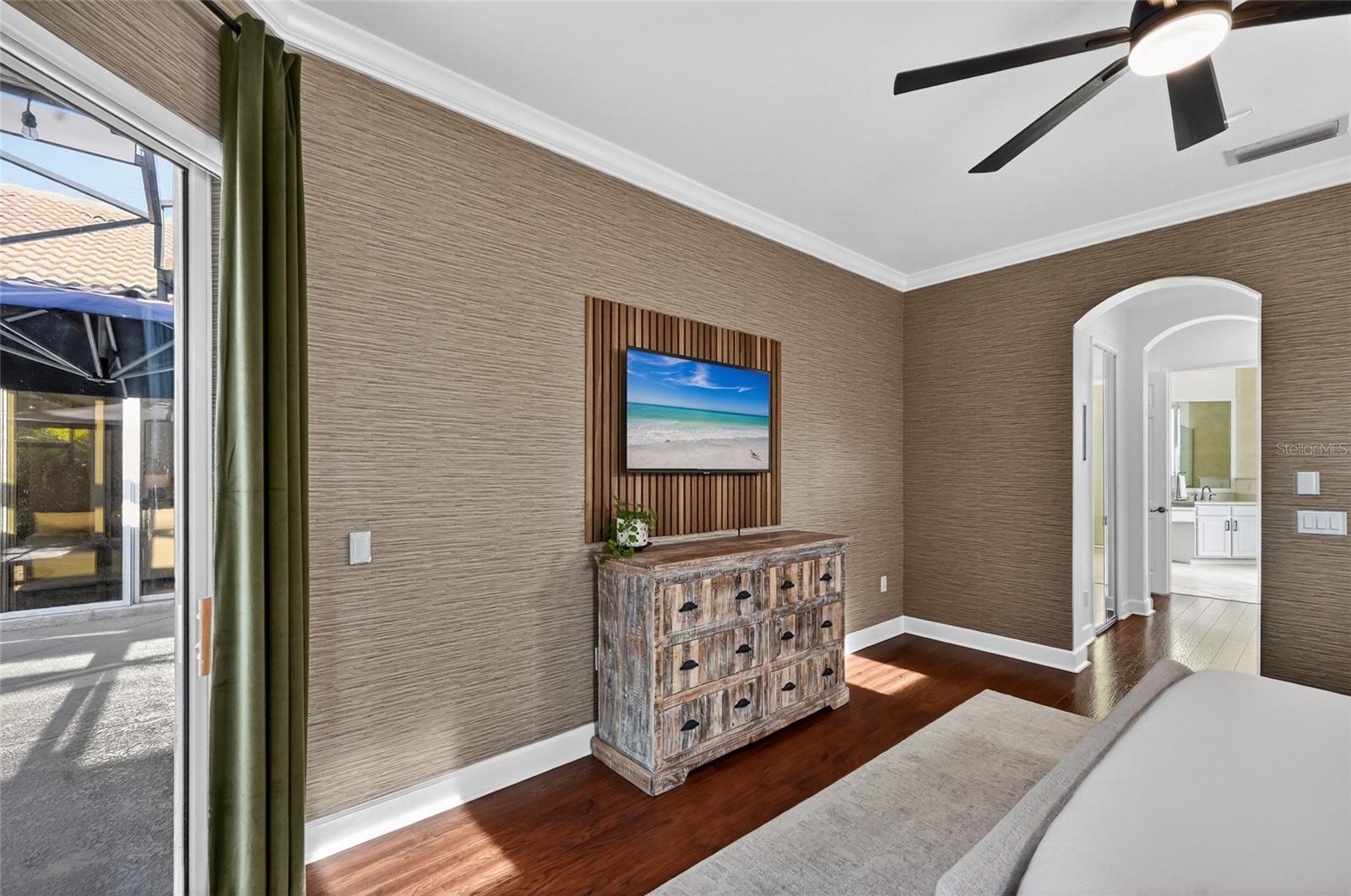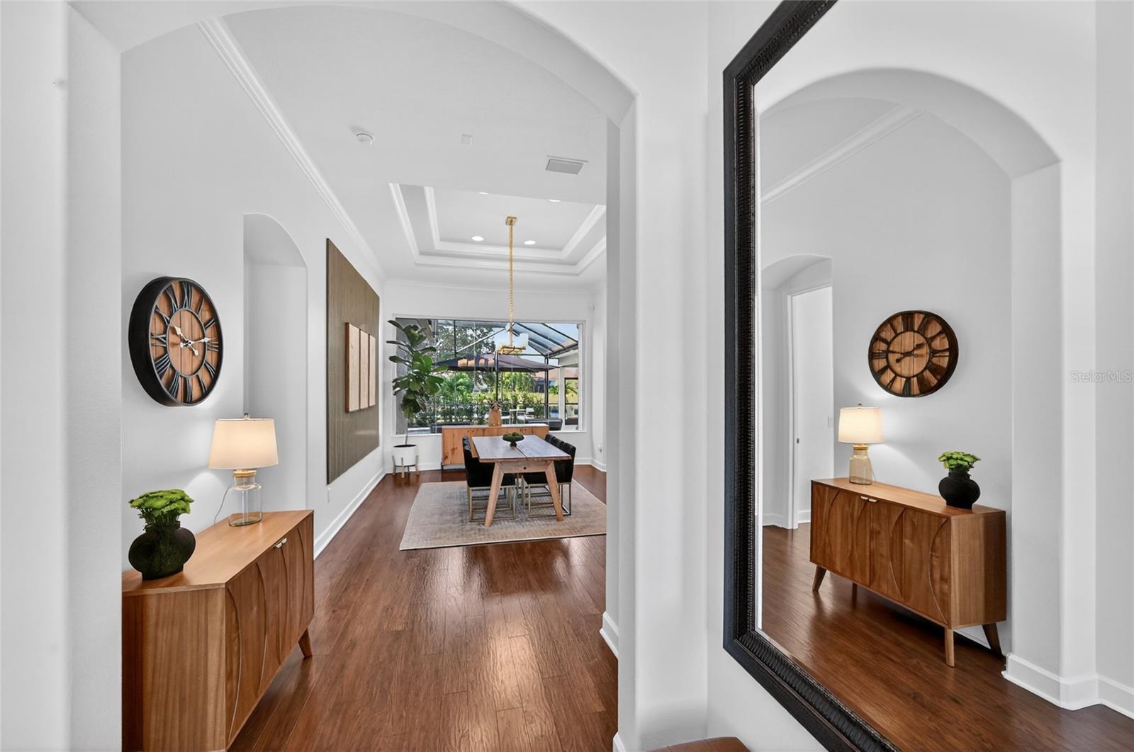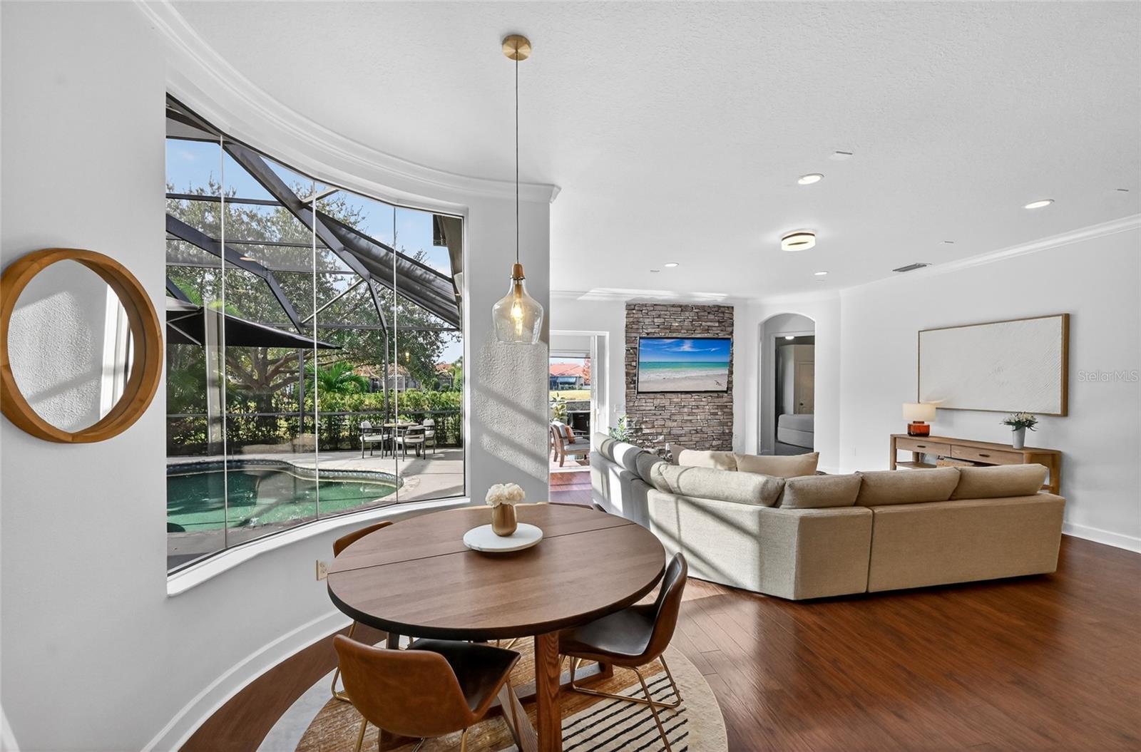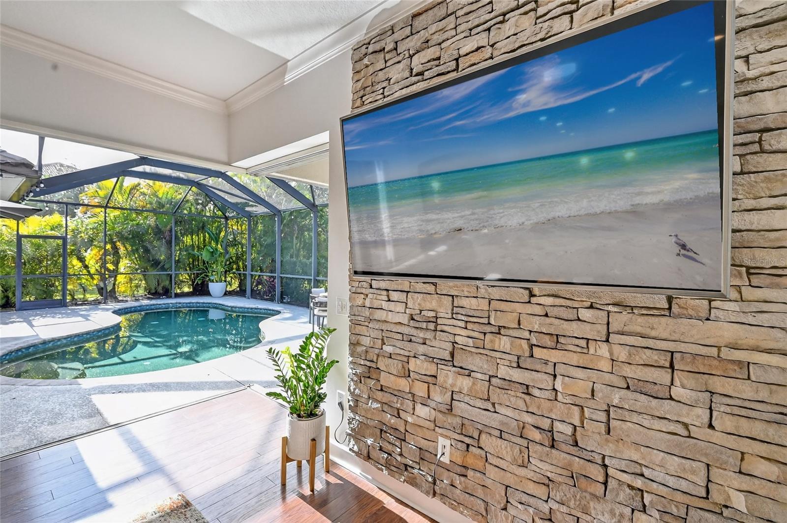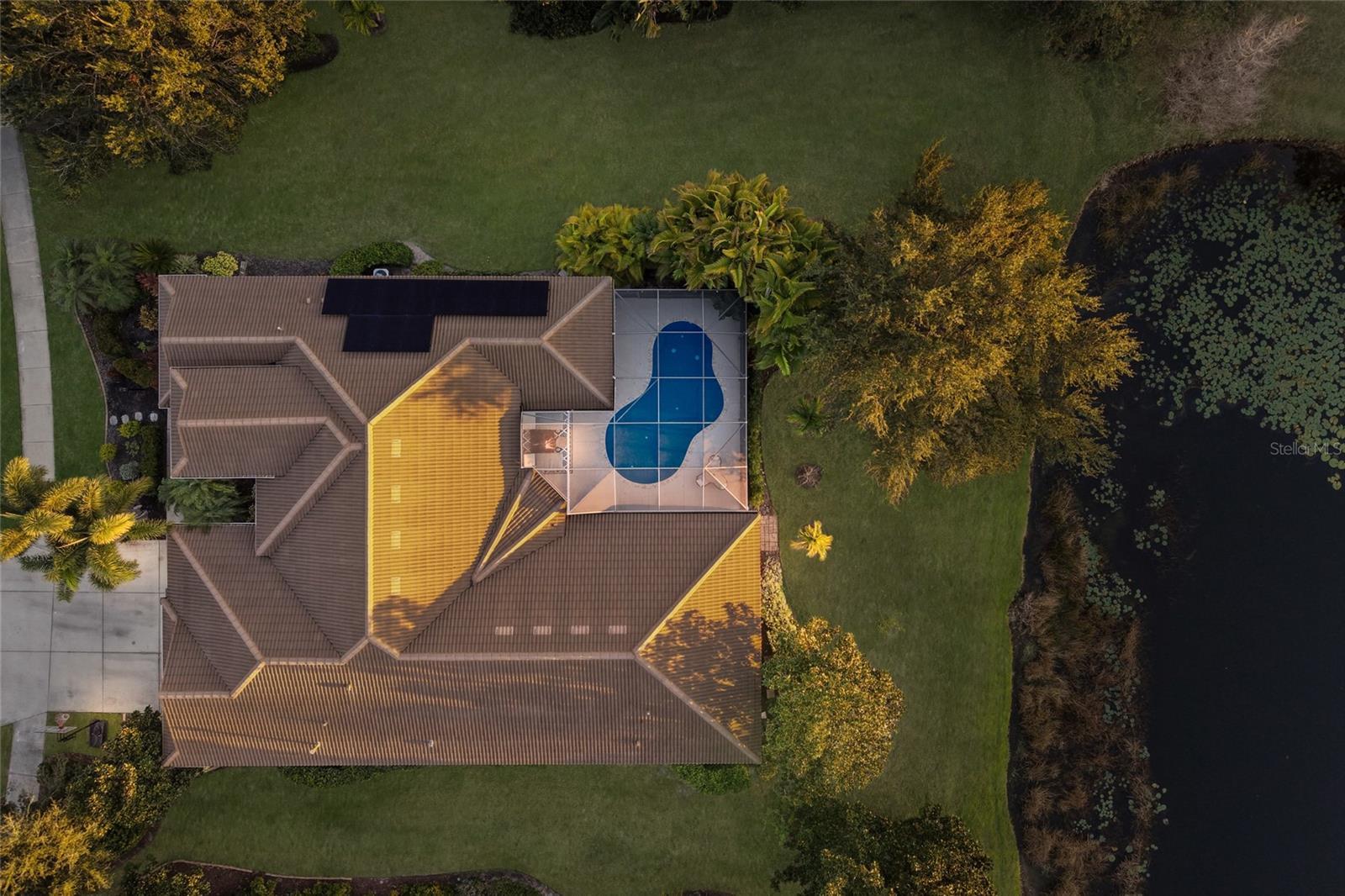 Welcome to this meticulously maintained, extensively remodeled home ideally located in the heart of Lakewood Ranch on a rare oversized .33-acre pond-front lot offering exceptional privacy and beautiful sunset views. With over 3,000 square feet, the home features 4 bedrooms, 3 bathrooms, and TWO dedicated home offices, making it perfect for modern living and working from home. The open floor plan showcases engineered hardwood floors, crown molding, plantation shutters, impact-resistant front doors, and a gourmet kitchen with quartz countertops, large island, pantry, double wall ovens, gas cooktop, stainless steel appliances, and a breakfast nook surrounded by aquarium glass windows. Retractable sliding doors open to an inviting outdoor living space with a heated saltwater pool and outdoor kitchen—ideal for entertaining. The spacious primary suite offers private lanai access, two custom walk-in closets, a luxurious bath with garden tub, walk-in shower, and dual sinks, while the split floor plan provides three additional bedrooms, two fully remodeled guest baths, and extra storage. Additional highlights include a Tesla Solar Powerwall whole-house backup system, three-car garage with electric vehicle charger and overhead storage, updated laundry room, refreshed landscaping, sealed roof tiles for an extended roof life, and a completely updated interior throughout. Located within walking distance to top-rated schools and parks, and just minutes from shopping, dining, and several sports venues, this move-in-ready home delivers privacy, luxury, and the ultimate Florida lifestyle.