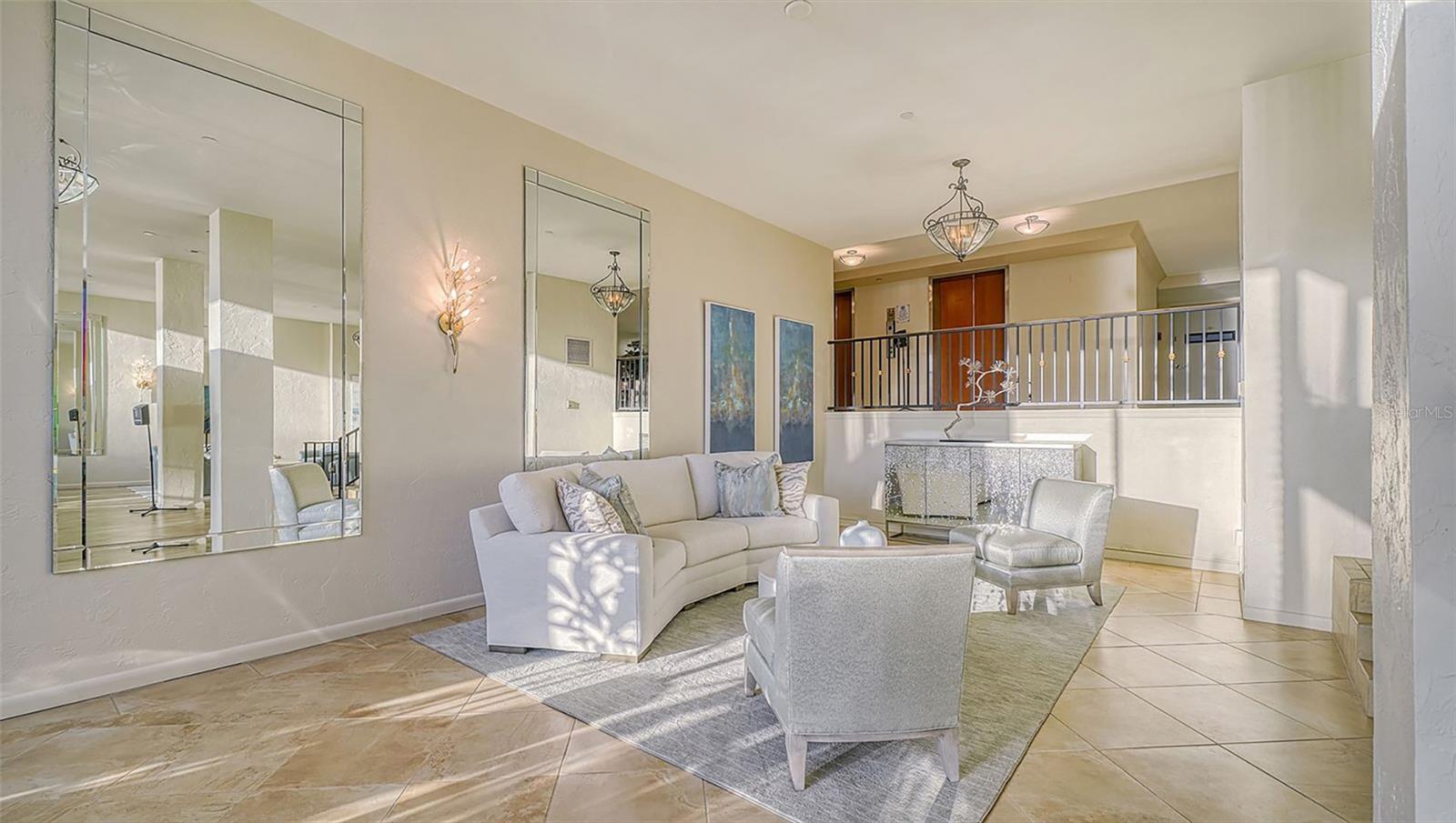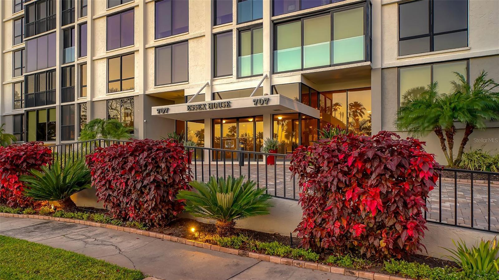 Be prepared for the breathtaking, unobstructed water views from this exquisite condominium in the Essex House – one of the very few residences unaffected by neighboring development. Perfectly positioned to capture sweeping vistas of Siesta Key, Sarasota Big Pass, Marina Jack and Downtown Sarasota, this exceptional 2+ bedroom, 2 bath residence offers a front-row seat to spectacular sunsets through dramatic floor-to-ceiling windows. Thoughtfully updated, the residence features coffered ceilings with recessed lighting, and a built-in electric fireplace, creating a warm and inviting ambiance for relaxing evenings while gazing out at the water. The contemporary gray-on-gray kitchen is both stylish and functional, featuring stainless steel appliances, an open shelves, and generous quartz counter space. The redesigned primary suite is a serene retreat with a custom closet, built-in desk area, bench seating with additional storage, dual sinks, quartz countertop and a beautifully appointed walk-in shower. You will appreciate the clean lines of wood imprinted porcelain tile flooring throughout, additional storage, built-in bookcases and washer/dryer. A true highlight of the home is the fully enclosed glass Florida Room, designed as a seamless extension of the living space and accessible from the living area and both bedrooms. Surrounded by glass and equipped with screens, this exceptional room is ideal for enjoying morning coffee or evening cocktails while taking in the ever-changing, memorizing views. Located in the heart of downtown Sarasota, you are just steps from award-winning restaurants, theatres, art galleries, boutique shopping, and Whole Foods. The Essex House amenities include a fitness center, pool deck, security, covered garage parking with an assigned space, and pet-friendly living. A rare opportunity for unobstructed water views and sophisticated downtown urban living. All assessments have been paid.