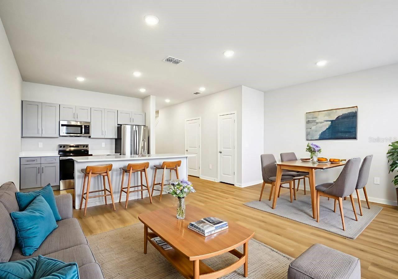 Welcome to Quinn Residences at Moccasin Wallow, a brand-new, maintenance-free rental community, ideally located in Parrish with convenient access to I-75, US-301, and Manatee County’s fastest-growing corridors. The Parrish floor plan offers 1,484 sq ft of thoughtfully designed living space featuring 3 bedrooms, 2.5 bathrooms, and a 1-car garage. The open-concept main level showcases a spacious living and dining area, a contemporary kitchen with a large center island, quartz countertops, stainless steel appliances, and ample cabinet space—perfect for everyday living and entertaining. Upstairs, the primary suite features a walk-in closet and en-suite bath, while two additional bedrooms and a conveniently located laundry area provide flexibility for guests, family members, or a home office setup. The townhome includes a fenced-in patio, ideal for added privacy and pet-friendly outdoor space. Residents will enjoy access to the future community amenities including a resort-style pool, clubhouse, pickleball court, playground, and dog park. Pet-friendly community (restrictions apply). Multiple lease terms available. Schedule your private showing today.