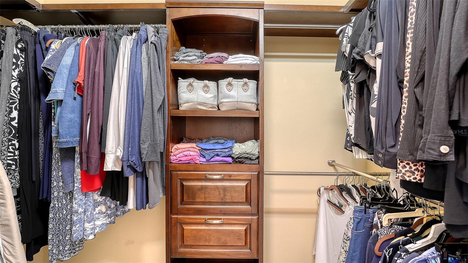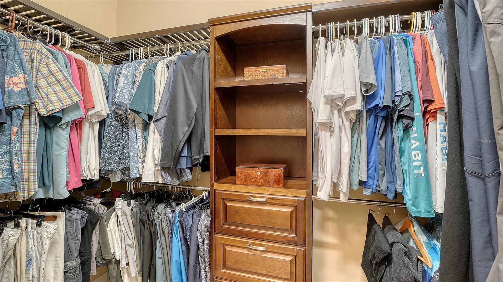 - Built-in Features, Ceiling Fans(s), Crown Molding, Eat-in Kitchen, Kitchen/Family Room Combo, Living Room/Dining Room Combo, Open Floorplan, Primary Bedroom Main Floor, Split Bedroom, Stone Counters, Thermostat, Tray Ceiling(s), Walk-In Closet(s)