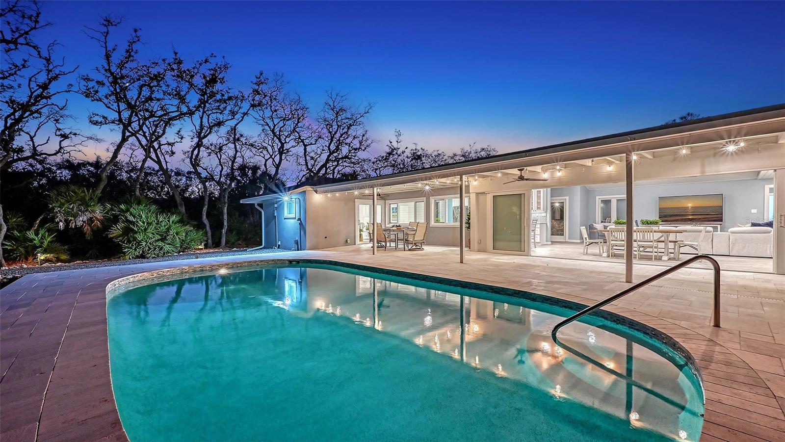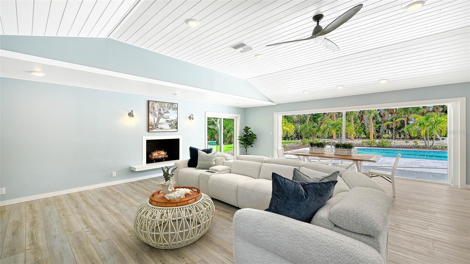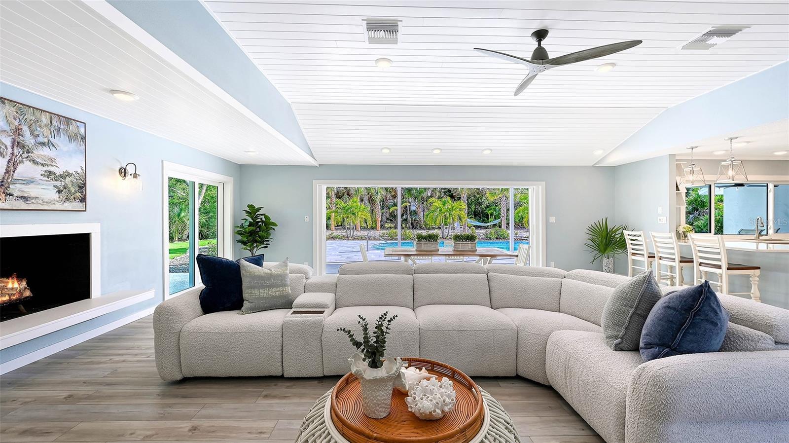 One or more photo(s) has been virtually staged. Set within the gates of the exclusive Sanderling Club on Siesta Key, this exceptional 3-bedroom, 3.5-bath residence presents a rare opportunity to own in one of the island’s most private and storied coastal communities. The Sanderling is a member-owned, Gulf-to-Bay enclave situated along both the bay and the Gulf, celebrated for its low-density design, lush tropical landscape, iconic banyan canopy, and unparalleled access to Siesta Key’s world-famous quartz sand beach. Residents enjoy boat slips for lease, both a clay and hard court tennis court, and several pickleball courts, enhancing the community’s coastal lifestyle. Adding to its uniqueness, the owners of this home also hold one-ninth ownership of the preserve lot next door, ensuring lasting privacy and the feeling of a protected natural buffer beside the property. Beautifully positioned among mature tropical landscaping, this totally renovated home blends timeless charm with meaningful, high-quality upgrades. All windows and doors are impact-rated, offering security, energy efficiency, and a peaceful interior environment. A brand-new roof was installed in 2025, and the home is insulated throughout with isonene foam insulation, creating exceptional climate control, quieter living, and long-term efficiency. Inside, the home is warm, inviting, and designed for relaxed coastal living. The main living spaces feature abundant natural light and tranquil garden views, enhanced by large windows and sliders that connect seamlessly to the surrounding greenery. A rare feature for Siesta Key, the living room includes a fully functioning wood-burning fireplace, creating a cozy focal point for cool winter evenings and adding unique character to the home. The open living and dining areas offer flexible space for entertaining or everyday comfort, while the kitchen provides ample cabinetry, generous workspace, and excellent flow to the surrounding rooms. In addition to the three bedrooms, the home includes a comfortable office ideal for remote work or quiet reading, as well as a large walk-in pantry offering exceptional storage and organization—valuable features that enhance everyday livability. The primary suite is privately situated and offers peaceful views, generous closet space, and an en-suite bath designed for comfort and functionality. Two additional guest suites, each with their own private bathrooms, provide excellent accommodations for family and visitors, while the convenient half bath enhances the main living areas. The layout flows naturally, offering privacy where needed and open gathering spaces where desired. Outdoor living is one of the home’s greatest attributes. Surrounded by mature landscaping and the Sanderling’s natural canopy, the outdoor areas feel serene and secluded. A beautifully installed turf lawn on the side of the home creates a low-maintenance, usable space ideal for pets, play, or additional lounging. A dedicated fire pit area adds to the ambiance, offering the perfect place to gather in the evenings and enjoy the soft Gulf breezes. As a resident of the Sanderling Club, you’ll enjoy access to a members-only beachfront, guard-gated security, clubhouse facilities, tennis and pickleball courts, and boat access—amenities that reflect the community’s architectural heritage, natural beauty, and commitment to privacy. The atmosphere here is timeless serenity, unmatched on the Gulf.