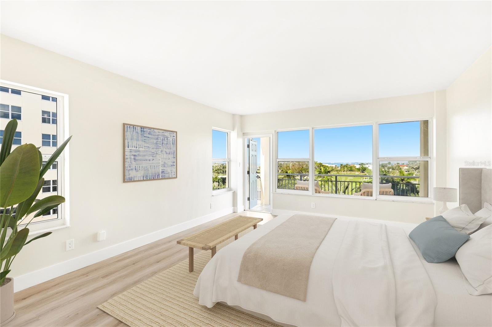 Welcome to Unit 504S at Longboat Key Towers, a rare corner beachfront condo for sale on the highly sought-after south end of Longboat Key, ideally located behind the gates of Longboat Key Club and just minutes from St. Armands Circle and downtown Sarasota. Perfectly positioned above the sand and sea, this spacious 2-bedroom 2.5 bath residence captures uninterrupted sweeping views of the Gulf of America and the Links on Longboat Golf Course, creating a dream coastal retreat that defines true luxury living. Step onto the private balcony to enjoy golden sunsets over the Gulf and soft morning light across the fairways, a rare advantage made possible by its prized corner orientation. Impact windows throughout the unit and building, combined with a financially stable and structurally sound community, along with rental flexibility allowing 3-month leases up to 4 times per year, make this a smart purchase for personal enjoyment today while also offering strong long-term investment potential. As a resident of Longboat Key Towers, you are stepping into a lifestyle of ease and exclusivity with resort-style amenities that include a beachfront heated pool and spa, fitness center, sauna, and direct beach access. The building also offers guest suites, making it effortless to host family and friends. Property is virtually staged.