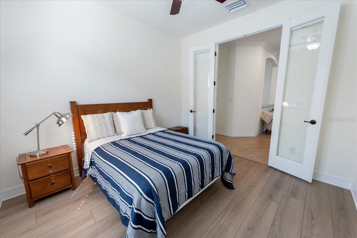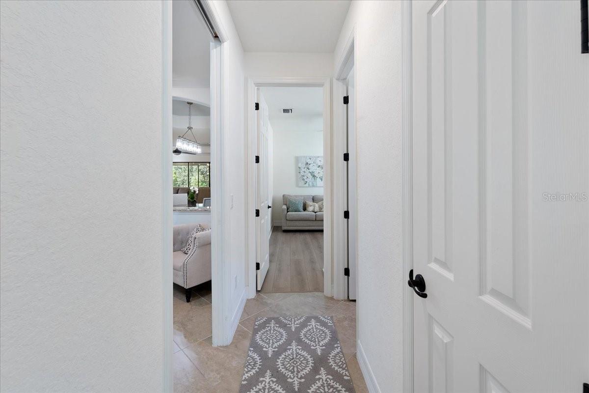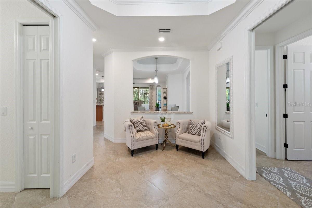 Offered at an exceptional value as the lowest-priced home currently available in Lakewood National Golf Club, this single-family residence is ideally situated on a quiet cul-de-sac and offers a peaceful setting within one of Lakewood Ranch’s most sought-after deeded golf communities. This well-appointed 4-bedroom, 2-bath, 2-car garage home welcomes you with a gracious foyer that creates a distinct living space at the front of the home, connecting seamlessly to the guest area and a generously sized laundry room with direct garage access. Two guest bedrooms are well-proportioned to accommodate king, queen, or twin beds and share a full bath with a pocket door that allows the guest wing to be closed off for added privacy. The fourth bedroom, office, or flex room offers versatile use with French doors and a large walk-in closet. The open-concept design then unfolds to the kitchen, dining, and living areas, featuring porcelain tile flooring throughout the main living spaces and highlighted by a large center island with granite countertops, maple cabinetry with under-cabinet lighting, designer backsplash, stainless steel appliances, tray ceilings throughout the primary living spaces, and crown molding. All overlook the lanai with outdoor kitchen, which opens to a wonderful nature preserve setting. The split-bedroom layout places the spacious primary suite at the rear of the home, featuring dual walk-in closets, tray ceiling detail, and a spa-inspired bath with double vanities, soaking tub, separate shower, private water closet, and linen storage. There is no private pool to maintain, with multiple community pools nearby and ample room to add a custom pool if desired. HOA-provided home landscaping includes routine mowing, shrub trimming, mulch, and ongoing maintenance, allowing for low-maintenance living. Impact-rated windows, along with impact-resistant protection for the rear sliding glass doors, provide added peace of mind. Seller upgrades include a Leaf Home Whole House Water Filtration System and the removal of carpet in all bedrooms, replaced with Luxury Vinyl Tile plank flooring by Fairfax Flooring, offering durability, a modern look, and a lifetime warranty. The garage features two ceiling-mounted storage racks for added organization and functionality. Lakewood National Golf Club is the only deeded golf community in Lakewood Ranch, where ownership for all residents includes access to two 18-hole Arnold Palmer–designed championship courses, one of which hosts the annual Korn Ferry Tour event, along with full community amenities. Residents enjoy a beach-entry heated lagoon pool with cascading waterfalls and lap lanes, six satellite pools, tiki bar, pub-style and fine dining in the Grand Clubhouse, a state-of-the-art fitness center with studios and a full-time trainer, spa services, lighted Har-Tru tennis, pickleball, bocce, practice facilities, scenic trails, and a vibrant calendar of community events. Completed in 2022, the community is fully established and professionally managed, offering 24-hour guard-gated and roaming security and a comprehensive, ownership-based lifestyle. A compelling opportunity within Lakewood National Golf Club.