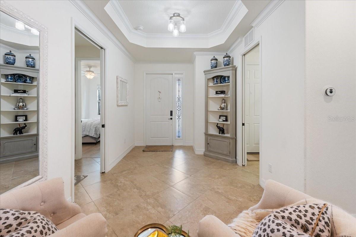 - Ceiling Fans(s), Crown Molding, In Wall Pest System, Kitchen/Family Room Combo, Open Floorplan, Primary Bedroom Main Floor, Smart Home, Solid Wood Cabinets, Split Bedroom, Stone Counters, Tray Ceiling(s), Walk-In Closet(s), Window Treatments