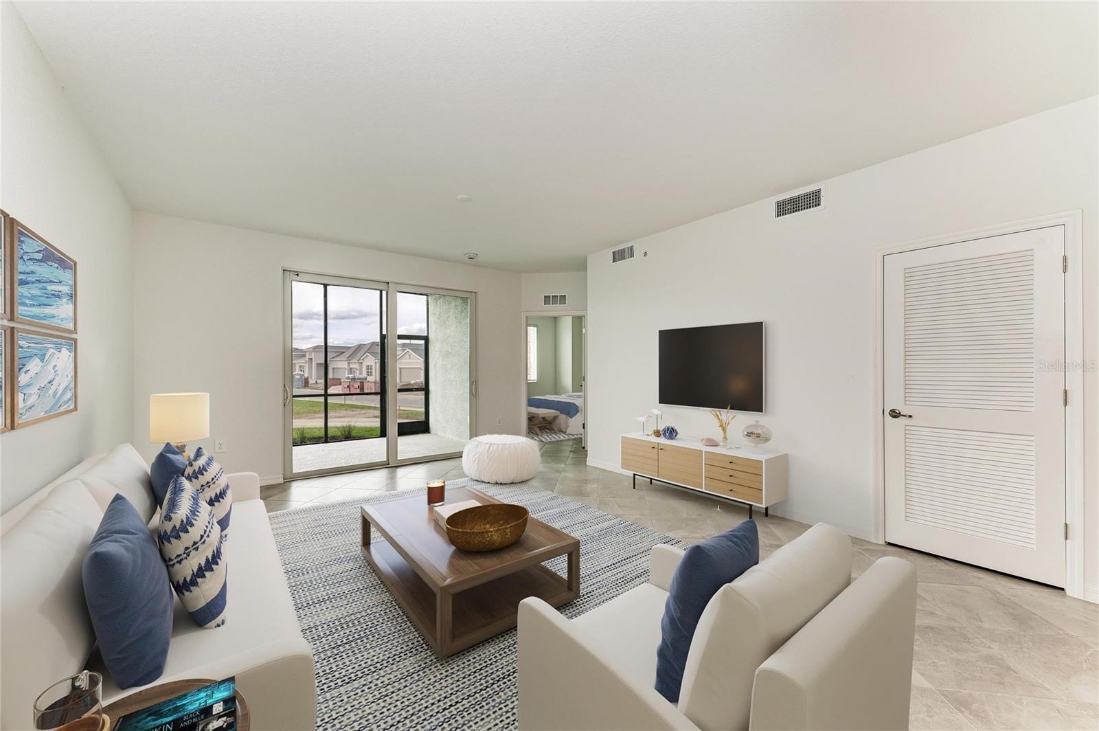 One or more photo(s) has been virtually staged. ** Immediate Occupancy in January. ** Furniture is on order for Delivery. Located in Lakewood Ranch’s highly sought-after Calusa Country Club, this brand-new first-floor 2-bedroom, 2-bath condominium with a den/office offers resort-style living in a premier bundled golf community. The open-concept floor plan begins with a welcoming covered front porch and flows into a spacious kitchen featuring all-new appliances, a large center island with bar seating, and a separate dining area. The unit offers large tile floors with no carpet. The expansive living area showcases tranquil golf course and water views. The bright primary suite offers two walk-in closets and an en-suite bath with dual vanities and a large walk-in shower. A private den with double doors and a window provides the perfect space for a home office. The guest bedroom is thoughtfully positioned for privacy and features a large window and easy access to the second full bath. Calusa Country Club offers two Gordon Lewis–designed golf courses included with the bundled golf membership, along with a clubhouse, restaurant, and bar. Residents enjoy scenic community trails with convenient access to Lakewood Ranch Main Street, Waterside Place dining and shopping, and the UTC Mall with year-round events. World-class resort amenities are currently under construction at Calusa Lakes, enhancing the exceptional lifestyle this community provides.