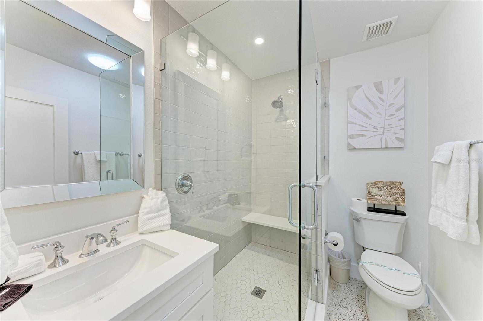 Located on the highly sought-after North End of Anna Maria Island, 115 Los Cedros—known as Oceans Blue—offers an exceptional location just steps from the Gulf beaches and the shops and dining of Pine Avenue. Set on a 10,000 square foot lot, this single-story Anna Maria Island beach house combines luxury, comfort, and peace of mind. The residence currently offers four bedrooms, with the flexibility for a possible fifth bedroom, along with 3.5 baths, including two ensuite bedrooms and an additional half bathroom that is ideal for guests. An additional 706 square feet of added living space creates a spacious and functional layout well suited for a primary residence, vacation home, or investment property. The light-filled interior showcases vaulted ceilings, terrazzo floors, and an open-concept design that flows seamlessly to the outdoor living areas. The updated kitchen features new shaker-style cabinetry, quartz countertops, custom tile backsplash, and stainless steel appliances, ideal for entertaining after a day at the beach. Expansive sliding doors open to a private outdoor oasis with a resort-style saltwater pool, swim-up sun shelf, and heated spa, surrounded by lush tropical landscaping and professional lighting. Enjoy peaceful mornings and sunset evenings from your private deck overlooking Lake Marsha, offering a rare waterfront setting for kayaking, fishing, or relaxing. This meticulously upgraded Anna Maria Island beach house includes a new metal roof, hurricane impact-rated windows, sliders, and exterior door, and fully renovated bathrooms with custom tile, glass shower enclosures, and Kohler fixtures. The home is fully flood-protected with a hammerhead flood barrier system on all sliders, exterior door and windows, providing added security and confidence for coastal living. Whether used as a primary residence, vacation home, or investment property, Oceans Blue at 115 Los Cedros offers a rare combination of location, 10,000 square foot lot size, flexible bedroom configuration, added square footage, luxury upgrades, and comprehensive flood protection—just moments from the beach and the vibrant energy of Pine Avenue on Anna Maria Island. ** Property information received from third-party sources is considered reliable but is not guaranteed. All information should be independently verified by buyers and buyer's agent.