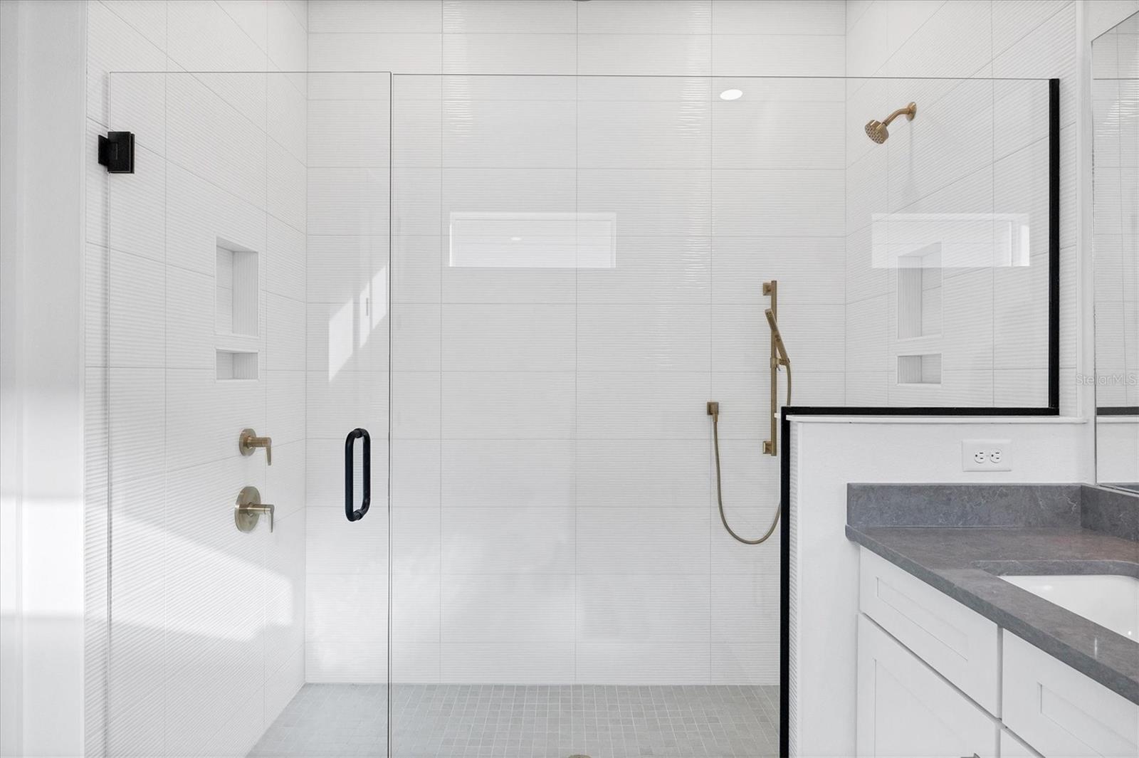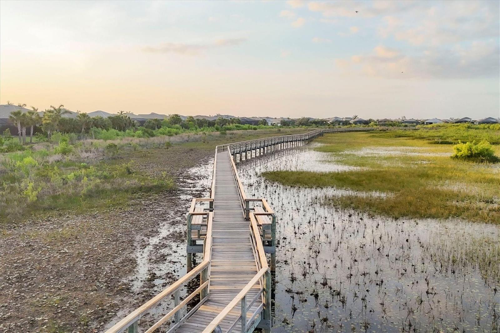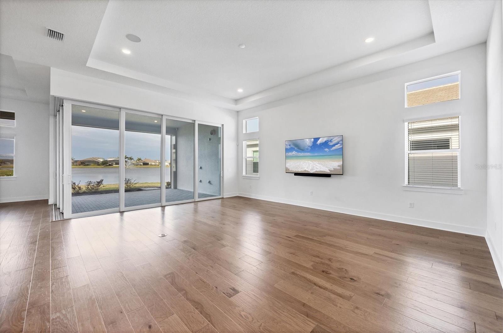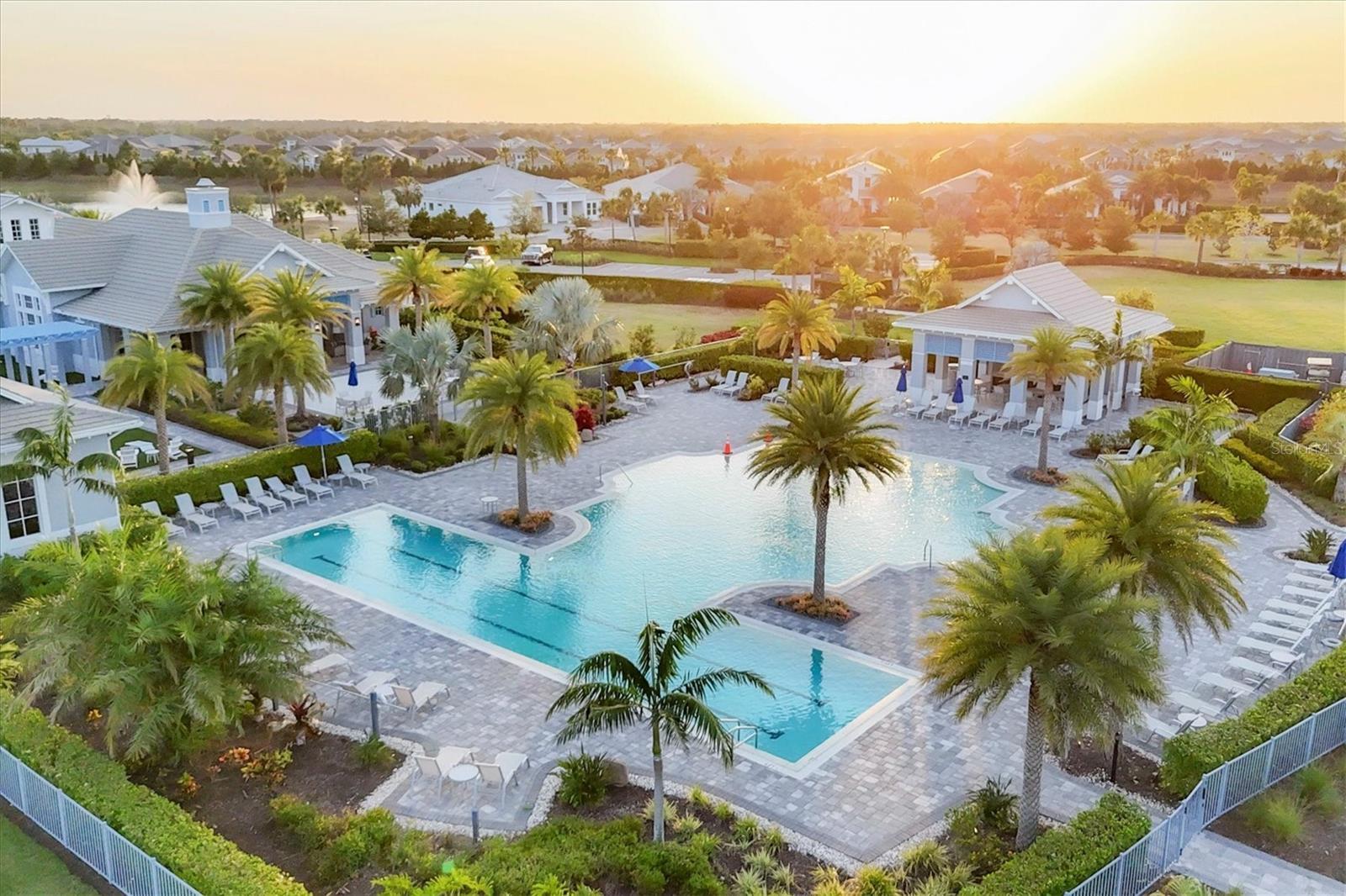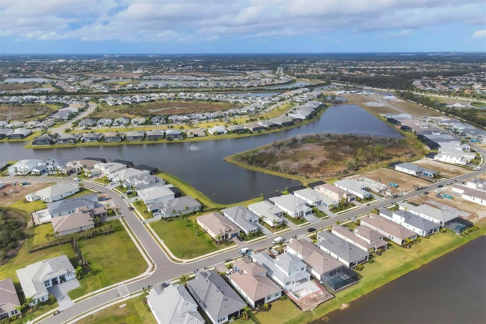 One or more photo(s) has been virtually staged. Coastal-inspired sanctuary, newly built and move-in ready, overlooking a peaceful pond and lush landscaping. This exceptional home features a refined architectural design, elegant finishes, and modern conveniences, creating a move-in-ready retreat. The owner’s carefully curated enhancements, thoughtfully executed after purchase, elevate the home with functional upgrades and luxurious details throughout. The open-concept floor plan offers 3 bedrooms and 3.5 baths, each with its own ensuite. Soaring 12’8” ceilings throughout the home and tray ceilings in the great room, kitchen, and primary suite create an airy, light-filled atmosphere, while engineered hardwood flooring flows throughout, including the newly updated flooring in the bedrooms, for a cohesive and elevated finish. The luxurious primary suite includes a walk-in closet, a spa-inspired walk-in shower with a rain showerhead system, and abundant natural light. The gourmet kitchen showcases premium cabinetry, upscale finishes, and a high-end stainless steel appliance package, opening seamlessly to the expansive great room ideal for everyday living and entertaining. A striking wall of 10-foot multi-panel stacking sliding glass doors, including a dramatic 90-degree corner opening, creates a seamless indoor-outdoor connection to the fully screened lanai, professionally created as a luxurious outdoor living space overlooking serene water views. The outdoor area is complemented by professionally enhanced landscaping designed to accommodate a future pool, providing the perfect setting for relaxation or entertaining. Post-closing enhancements include: a professionally installed full gutter system, new custom window treatments, full exterior camera security system, high-end washer and dryer with pedestals. The three-car garage is upgraded with an air-conditioning system, ideal for climate-controlled storage, hobbies, or a home gym. Entertainment features include an 85-inch TV with surround sound in the great room and a 55-inch TV in a secondary bedroom. Residents of The Isles at Lakewood Ranch enjoy an active, resort-style lifestyle in this gated community, with access to a clubhouse, fitness center, pool, tennis and pickleball courts, a playground, dog park, and recreation spaces, providing endless opportunities for relaxation, play, and social connection. This newly built, never-occupied home has been thoughtfully enhanced by the owner with $40,000 in upgrades and custom touches designed to elevate both functionality and luxury.
