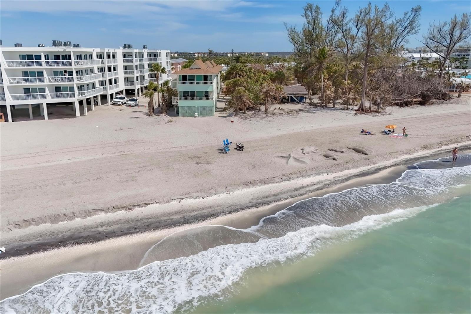 Under contract-accepting backup offers. DIRECT PANORAMIC GULF FRONT VIEWS AND 90K+ YEAR IN WEEKLY RENTAL INCOME! VRBO TOP PRODUCER WITH 80+ 5-STAR REVIEWS. * This unit may also be purchased along with the condo directly above - UNIT 1B - MLS #A4675901 - GIVING YOU A WHOLE ENTIRE BUILDING ON THE BEACH WITH DIRECT VIEWS OF THE GULF OF MEXICO. * LOW CONDO FEE OF JUST $365/MO and this unit survived all the storms with no damage and still stands strong. BEING SOLD TURN-KEY FURNISHED w/ BOOKINGS IN PLACE SO YOU CAN START MAKING MONEY IMMEDIATELY. We all need to feel the warmth of the sun on our skin, listen to the gentle lapping of water on the shore, and stare out at the azure waters of the Gulf and reflect sometimes. MAKE YOUR DREAMS COME TRUE AND USE THIS MONEY MAKER when not rented to recharge your soul - life is short. DOG FRIENDLY complex, no size or number limit! This stunning 1 BED condo has 2 recently remodeled full baths. Enjoy the ABSOLUTE BEST SUNSET VIEWS you will ever see from the LARGE COVERED PORCH. Generous windows on all sides and FULLY POCKETING SLIDING GLASS DOORS make this beachy bungalow feel LIGHT, BRIGHT, and SPACIOUS. Recent improvements include IMPACT WINDOWS AND SLIDERS, LUXURY VINYL TILE FLOORING (LVT), and REMODELED BATHS. The Kitchen has also been updated and features solid WHITE SHAKER CABINETRY, QUARTZ COUNTERS, and modern STAINLESS-STEEL APPLIANCES. * NEW HVAC (2024) * NEW TREX DECK AND STEPS (2024) * After a relaxing day at the beach, you can walk across the street to the famed Magnolias on the Bay for dinner and drinks. All the other shops, restaurants, and lively nightlife of Manasota Key are just a short stroll away.