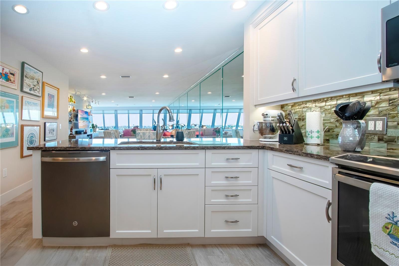 Experience elevated coastal living in this stunning penthouse residence at 1200 E Peppertree Drive, Unit 601. Perched atop the building, this exceptional unit offers breathtaking panoramic views of the Intracoastal Waterway and downtown skyline, creating a spectacular backdrop from sunrise to sunset. Completely renovated with impeccable attention to detail, the residence features custom built-ins, high-end finishes, and a thoughtfully designed layout that blends style and functionality. The open living spaces are bathed in natural light, maximizing the views and enhancing the penthouse feel throughout. Located in the highly desirable Peppertree Bay, a rare gulf-to-bay community with deeded beach access, residents enjoy resort-style pools on both the Gulf and Bay sides, lush tropical grounds, and exceptional amenities. Just steps from world-famous Siesta Key Beach and minutes to dining, shopping, and entertainment, this is a rare opportunity to own a move-in-ready penthouse offering luxury, views, and the ultimate island lifestyle.