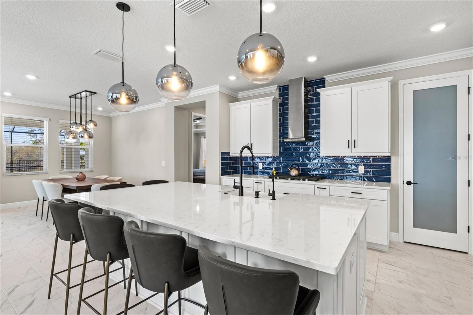 Welcome to this beautifully upgraded 2025-built, four-bedroom pool home, ideally situated on a premium lot within the gated Sweetwater community of Lakewood Ranch. Designed for modern living and effortless entertaining, this residence offers impact-rated windows and doors, a whole-home generator, crown molding, tray ceilings, 8-foot interior doors, upgraded baseboards, and refined lighting throughout. The interior features tile flooring across the main living areas, plush upgraded carpeting upstairs, and a thoughtfully designed floor plan with a first-floor primary suite complete with a spacious walk-in closet and spa-inspired bath. The kitchen was enhanced in July 2025 with an upgraded appliance package and soft-close cabinetry throughout the home, complemented by a whole-house water softener system with reverse osmosis filtration at the kitchen sink, professionally installed by H2O Heroes in February 2025. Additional features include a built-in drop zone with cabinetry and counter space, upstairs storage with a dedicated tech or homework station, theater-style staircase lighting, and whole-home speaker wiring with ceiling speakers already installed in the living room, loft, and lanai. Sliding doors open to an extended lanai pre-wired and plumbed for an outdoor kitchen, overlooking a fenced backyard with a private pool—ideal for relaxing or entertaining. Added peace of mind comes from a home security system with cameras, surge protection for exterior HVAC units, tankless water heaters, a 20-amp garage outlet, and premium finishes throughout. Residents of Sweetwater enjoy resort-style amenities including a clubhouse, fitness center, heated pool, pickleball courts, and playgrounds, all within one of Lakewood Ranch’s most desirable communities. This home offers the perfect blend of style, comfort, and location.