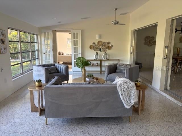 - Ceiling Fans(s), Eat-in Kitchen, Kitchen/Family Room Combo, Living Room/Dining Room Combo, Open Floorplan, Primary Bedroom Main Floor, Solid Wood Cabinets, Stone Counters, Thermostat, Vaulted Ceiling(s)