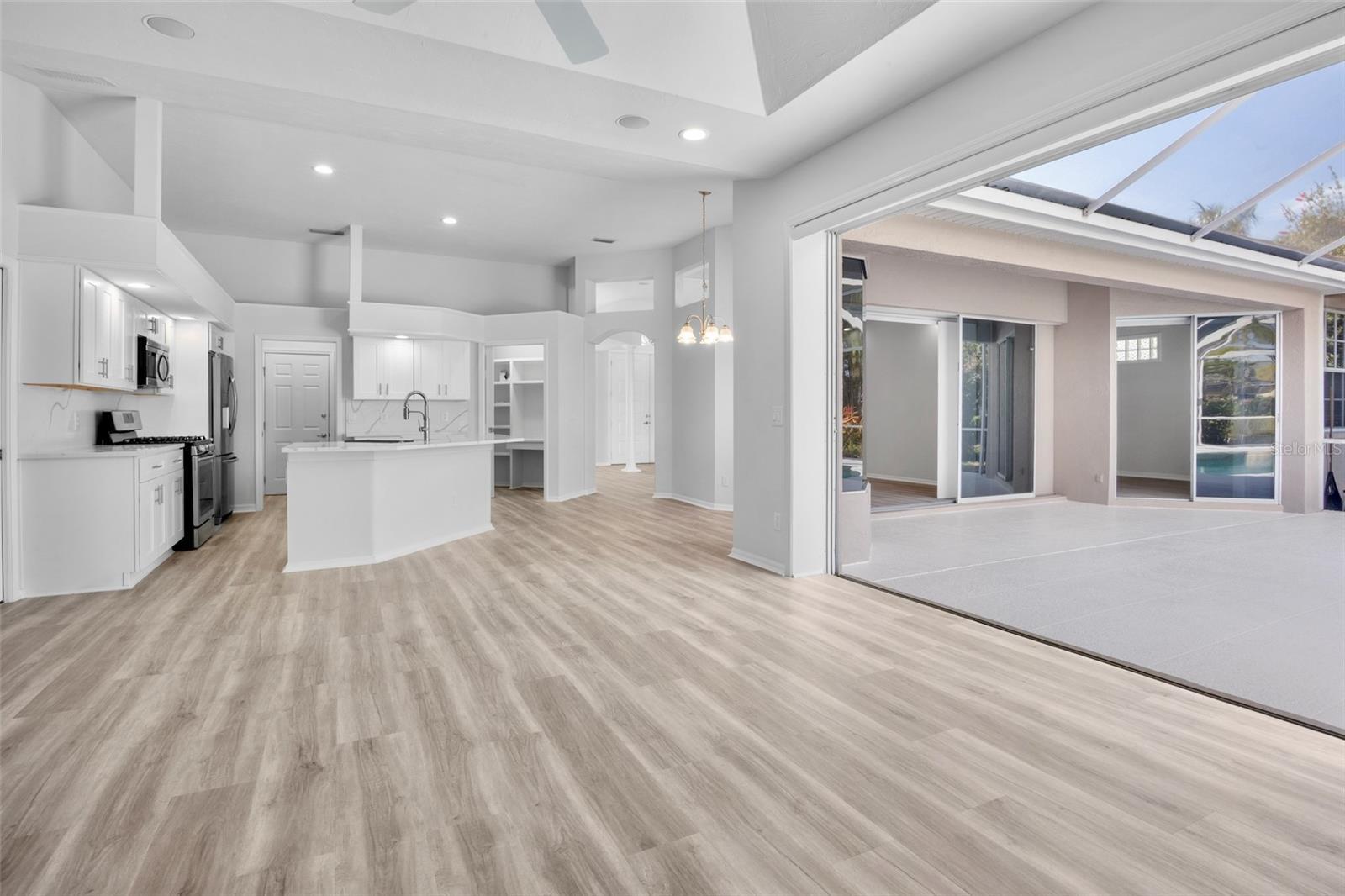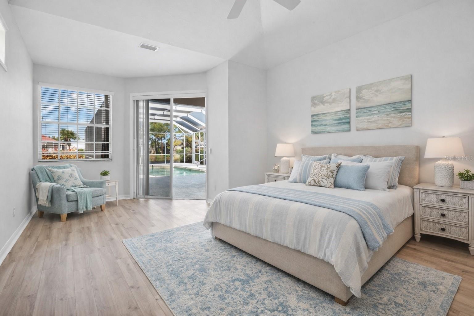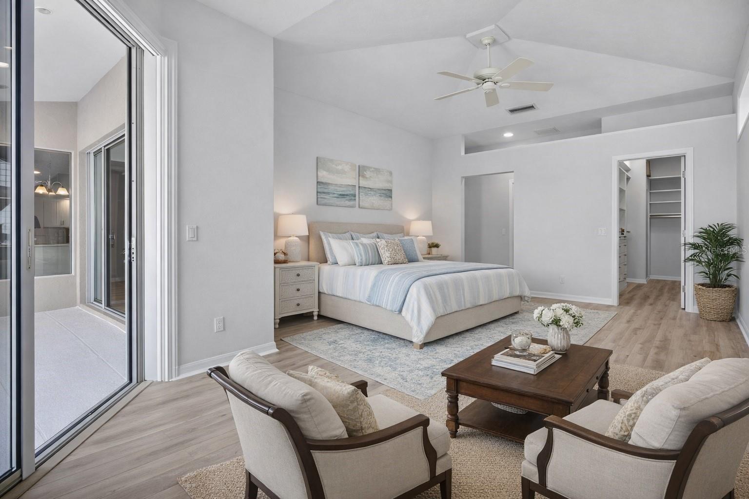 One or more photo(s) has been virtually staged. The definition of “move-in ready” has just been elevated with this beautifully updated and elegant Todd Johntson–built WATERFRONT home, ideally located behind the gates of the highly desirable Turtle Rock community in Palmer Ranch, known for its miles of scenic walking and biking trails. Offering just under 2,600 square feet of comfortable living space, this exceptional residence features 4 bedrooms and 3 bathrooms, with the fourth bedroom perfectly suited as an office or flexible living space. Extensively refreshed and meticulously maintained, this home is truly ready for its next fortunate owners. Recent upgrades include a complete interior and exterior repaint in today’s modern color palette, luxury vinyl flooring throughout, and a FULLY RENOVATED KITCHEN showcasing brand-new shaker-style cabinetry, quartz countertops with a matching backsplash, and a farmhouse sink with an elegant faucet. The kitchen is further enhanced by stainless steel appliances, including a natural gas range (Turtle Rock is a natural gas community), dishwasher, microwave, a side-by-side refrigerator with drawer, and an additional refrigerator in the laundry room for added convenience. The house has been completely repipped for peace of mind. Both the primary and guest bathrooms have also been tastefully updated. Additional improvements include a freshly painted garage and a newly finished garage floor. Other notable features are a roof replaced in 2015, an energy-efficient air-conditioning system for economical climate control, and an oversized primary suite with custom built-ins in the spacious walk-in closet. High ceilings, spacious rooms, multiple sliding glass doors, and an aquarium window in the kitchen nook fill the home with abundant natural light while highlighting the beautiful surrounding scenery., LED lighting throughout for more of the updated look and aditional energy savings. The open and airy kitchen sits at the heart of the home and flows seamlessly to the covered lanai and expansive, fully screened outdoor living area. A generously sized pool and tranquil lake views provide the perfect backdrop for family gatherings and year-round entertaining. Residents of Turtle Rock enjoy an optional active social calendar, a community center, heated pool, and tennis courts basket and pickleball courts . Ideally located just minutes from shopping, dining, world-class entertainment, the Legacy Trail, and the world-famous Siesta Key Beach. Schedule your private showing today—this exceptional home will not last.