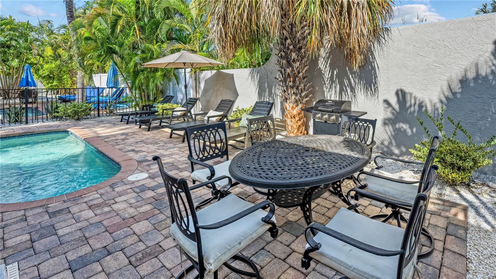 Under contract-accepting backup offers. EXCEPTIONALLY RARE - A Siesta Key Unicorn! This 4-bedroom, 4-bath property offers the opportunity to use as a Personal Residence (perfect for multi-generation living), Vacation Home or Duplex. This property is zoned for DAILY rentals, making it ideal for AirBNB! Just a short stroll to the world-famous sugary white sands of Siesta Key Beach, this charming coastal gem is beautifully renovated, decorated in soft beach-inspired hues with comfortable furnishings, tropical décor, and easy-maintenance tile flooring throughout. Designed for both lifestyle and performance, the property is being sold fully furnished and turnkey. Outside, enjoy a fenced, heated pool area surrounded by lush tropical landscaping that creates a private oasis for relaxation. The pool area offers brand-new lounge chairs, a grilling area, and outdoor dining for six—perfect for entertaining guests or unwinding after a day at the beach. There are four assigned parking spaces directly in front, adding convenience for owners and guests alike. This property offers exceptional flexibility and appeal. It is currently being professionally managed as a duplex with future bookings in place and a strong rental history. Whether you are looking for a personal residence for multi-generational living, a place to live AND generate rental income, or a high-performing short-term rental investment, this is it! The property is currently managed by a professional local vacation rental company, making ownership seamless and low-stress. Located close to shopping, dining, trolley stops, South Siesta Key Village, and more, this is a prime location that continues to attract repeat visitors year after year. Call now to schedule a private showing of this must-see property.