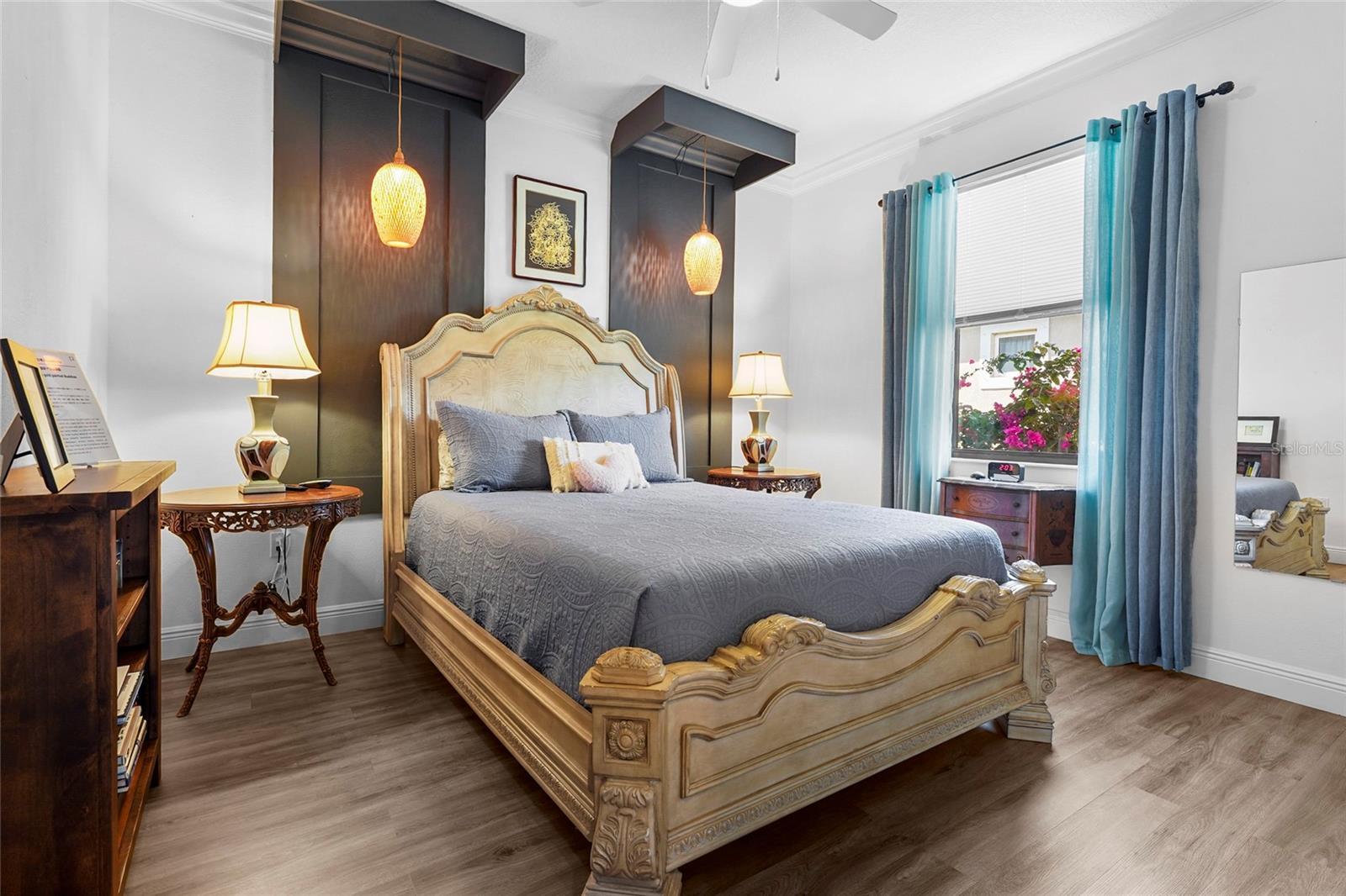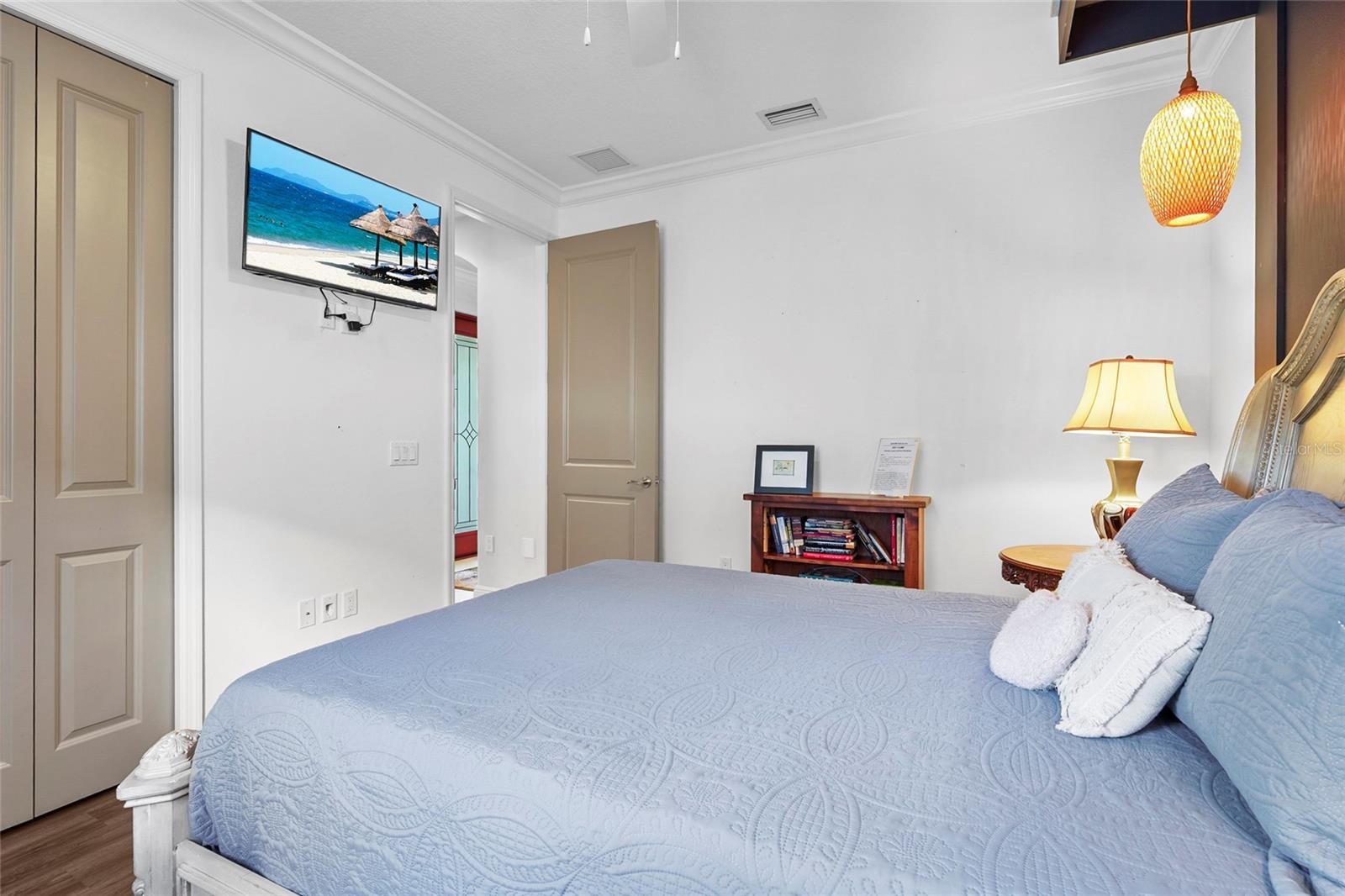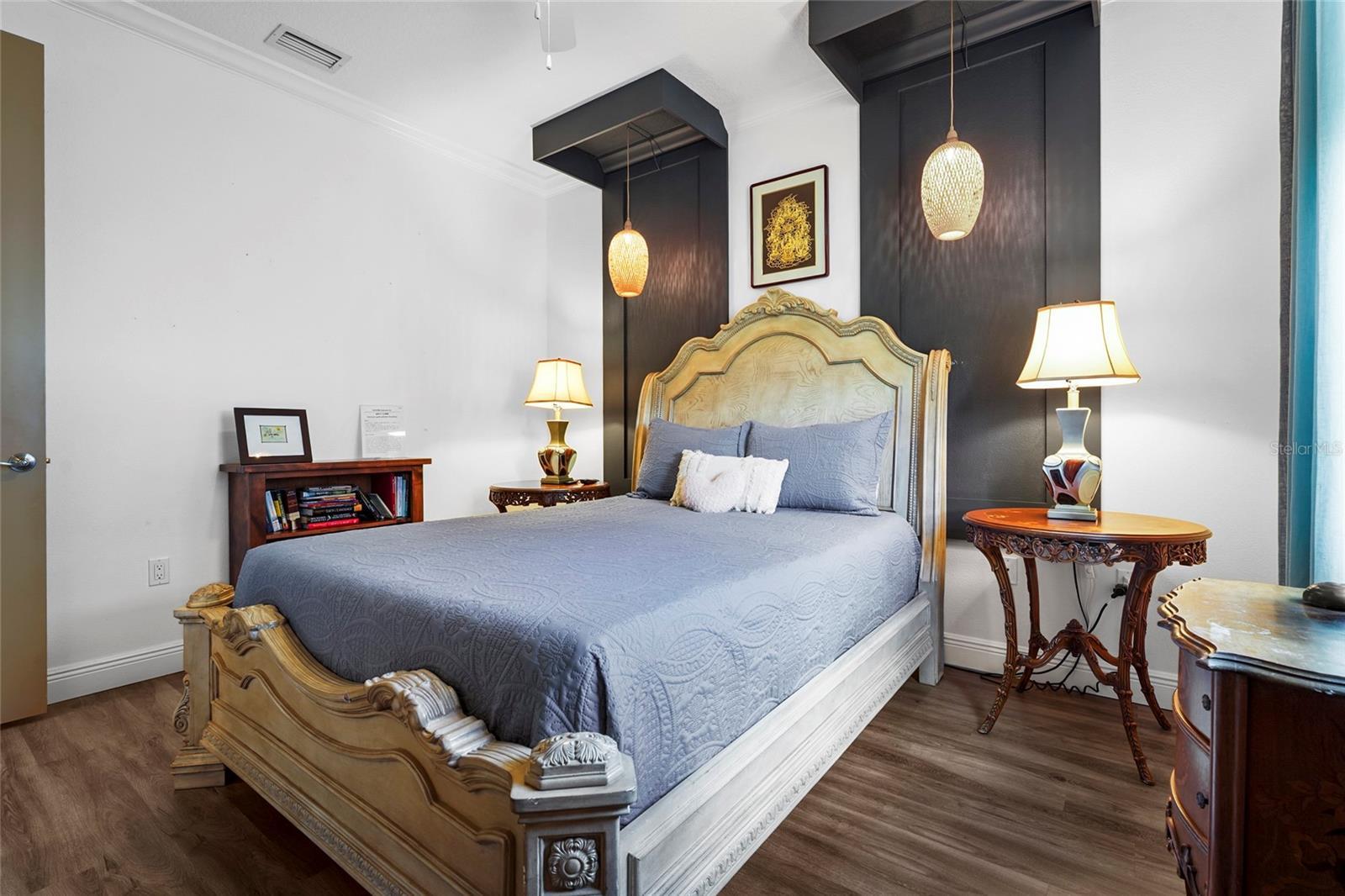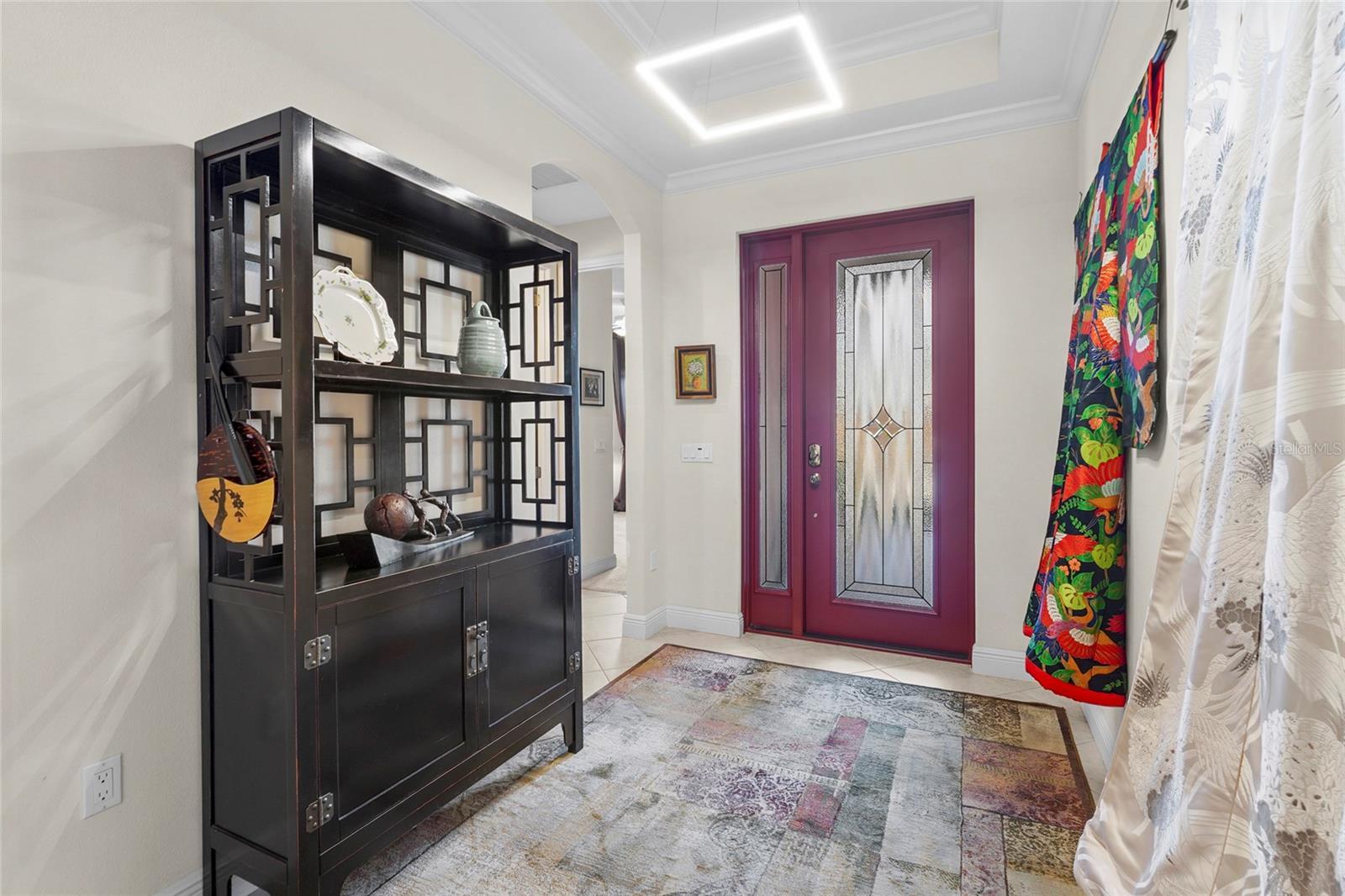- Crown Molding, High Ceilings, Kitchen/Family Room Combo, Primary Bedroom Main Floor, Stone Counters, Tray Ceiling(s), Wet Bar