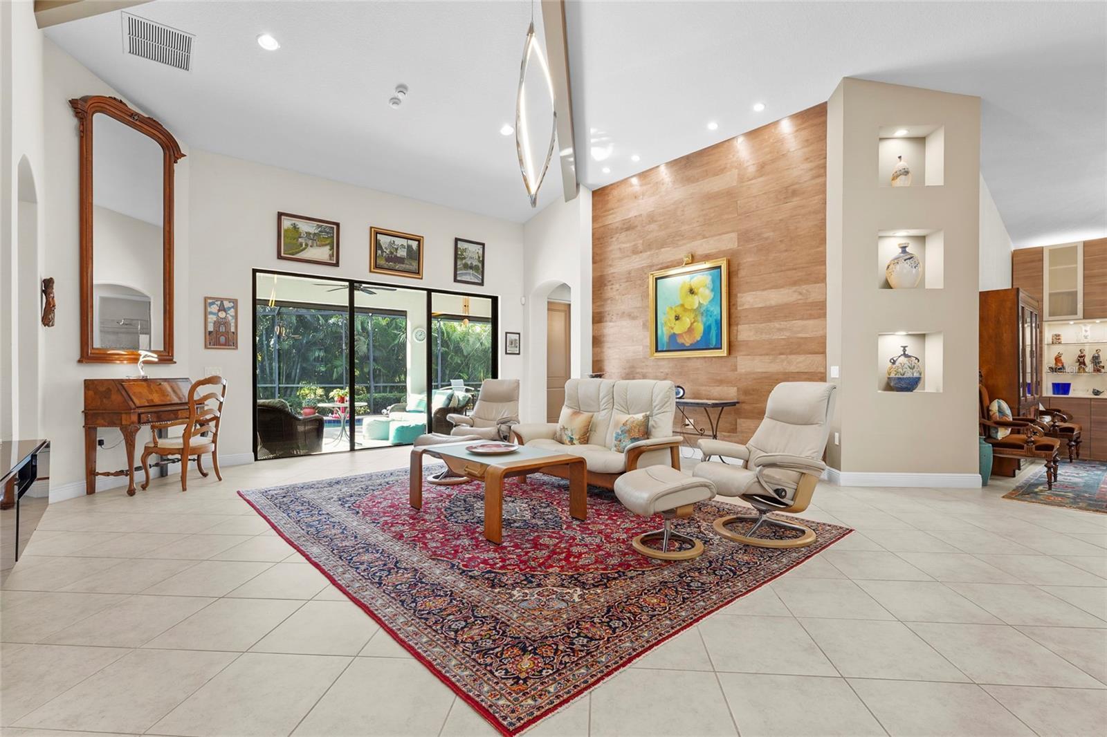 Set within the established, gated community of Greyhawk Landing, this sought after Kingsley model by Homes by Towne was built in 2016 and positioned on a generous lot with tranquil water views, offering a balance of space, privacy, and thoughtful design. Inside, crown molding, soaring ceilings, tray details, and eight foot interior doors create an open and elevated feel throughout the main living areas. The layout offers four bedrooms and three baths, designed to live comfortably while still feeling refined. Natural gas stove and new kitchen updates anchor the heart of the home, complemented by granite countertops and a custom dry bar featuring European style cabinetry, beverage refrigeration, and a distinctive live edge bar top with cobalt blue river detail. The primary suite is a true retreat, with direct access to the lanai, separate vanities, built-ins within the walk-in closet, and a spacious walk in shower. The guest bathroom includes a walk in tub for added comfort and accessibility. Additional features include a whole home water filtration system, central vacuum, security system, and a vehicle charging station. Outdoor living is where this home truly shines. The lanai features an automated built in hurricane screen, a brand new custom outdoor kitchen and grill, and a beautifully designed pool and hot tub, all accented by LED cage lighting. Mature areca palms provide exceptional natural privacy, while the northwest facing water views across the pool deck create a peaceful and inviting setting. Storage has been carefully considered throughout, including a three car garage with extensive custom cabinetry that will appeal to anyone who values organization, functionality, or creative workspace. Greyhawk Landing residents enjoy resort style amenities including a clubhouse, fitness center, community pool, tennis and basketball courts, playgrounds, and miles of sidewalks winding through lakes and preserves, all while remaining conveniently close to Lakewood Ranch, UTC, and major commuter routes.