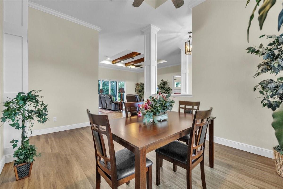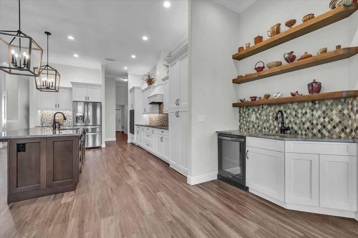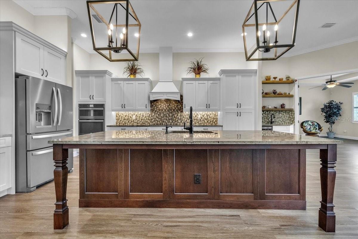 - Built-in Features, Ceiling Fans(s), Dry Bar, Eat-in Kitchen, High Ceilings, Kitchen/Family Room Combo, Open Floorplan, Primary Bedroom Main Floor, Solid Wood Cabinets, Split Bedroom, Stone Counters, Tray Ceiling(s), Walk-In Closet(s), Window Treatments