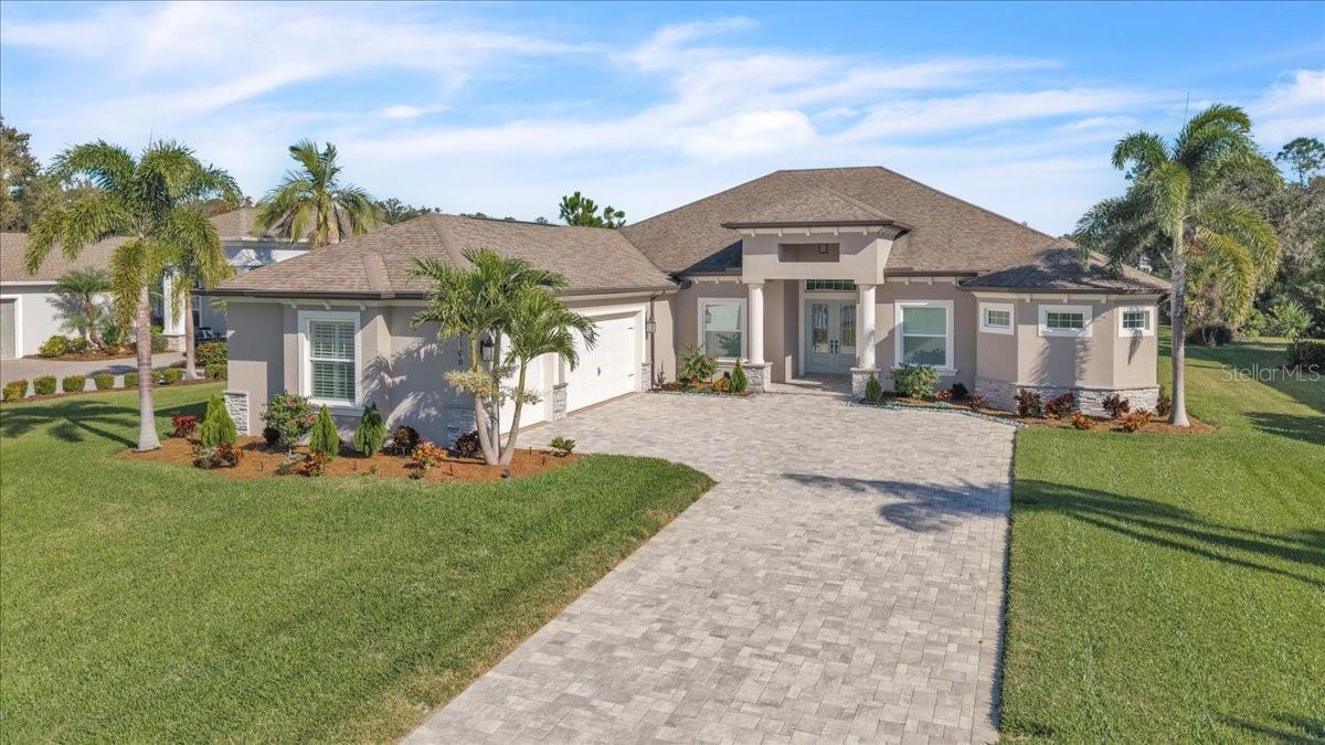 MAJOR PRICE REDUCTION - MOTIVATED SELLER! EXCEPTIONAL VALUE ON LUXURY HOME! Nearly new former model home in the highly sought-after Twin Rivers community with serene lake views! This exceptional 3-bedroom, 3-bath residence with a 3-car garage offers a bright open-concept layout, high ceilings, and designer finishes throughout. The stunning kitchen anchors the home and is complemented by a hidden walk-in pantry, ideal for entertaining and everyday living. The spacious floor plan includes a private office and a versatile bonus room. Designed for comfort, efficiency, and peace of mind, the home features icing insulation, hurricane-impact windows and doors, and no flooding issues to worry about. The resort spa-inspired primary bathroom is a true retreat, featuring a freestanding soaking tub surrounded by natural rock tile, a temperature-controlled shower system, and an oversized rain shower head, creating a luxurious, spa-like experience at home. Outdoor living is equally impressive with a large covered lanai and panoramic screen enclosure, offering tranquil lake views and seamless indoor-outdoor enjoyment. The garage is a standout with epoxy flooring, custom built-in cabinetry, and a split-unit A/C, ideal for a workshop, gym, or climate-controlled storage. Meticulously maintained and thoughtfully upgraded, this former model home delivers luxury, functionality, and efficiency in one exceptional offering. Schedule your private showing today—this remarkable Twin Rivers home will not last.