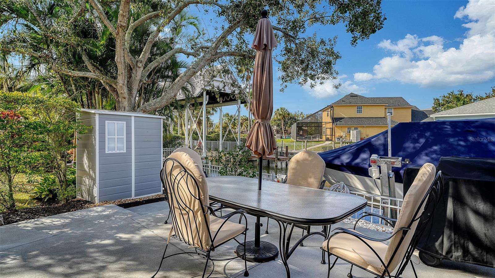 This is a three-bedroom, plus den/office, three-bathroom canal front home with a 10,000 pound boat life installed in 2024. This unfurnished home has 2,073 square feet of air-conditioned living space and 2,847 square feet under roof. The improvements that the current owners have made are a new 10,000 pound boat lift in 2024 with new pilons, electric and water at the dock, which is on the seawall and walking distance to the lock system. Inside, new tile flooring and lighting throughout. The Kitchen has been updated and has a new refrigerator and microwave. A new washer/dryer in the inside utility closet off the Kitchen. The garage has new epoxy flooring and the pool has a new light, skimmer, and refurbished pool cage. The rear lanai has a new outdoor Kitchen with built-in countertops, steps and patios. This home is in the cul-de-sac with a circular driveway and a two-car garage. There is a double door entry into the foyer with the den/office/study to the left and the living room to the right. It has a separate dining room with a granite butler countertop with storage underneath. The third bathroom, shower only (pool bath) is off the hallway and between both guest bedrooms (the 2nd and 3rd) is a shower only 2nd bathroom. The primary suite has dual walk-in closets and a newly updated bathroom, with dual glass sinks, separate tub and separate shower stall. The living area, Kitchen, and the primary suite look over the huge screened lanai area and the canal. Sliding glass doors out and French doors from the primary suite. This is Florida and outdoor living is a must. The caged pool lanai (patio) area has four sections. A 9 x 13 covered area for relaxing seating. The concrete pool deck area is 15 x 36 and the 10 x 24 swimming poo and 9 foot diameter spa. The 15 x 32 summer kitchen area, with built-in countertops with stools, the television, table and chairs. Outside the cage is a 13 x 15 open patio with tables, chairs and an umbrella very close to the boat lift. This entire area is for the maximum outdoor living space and for owners, like there who enjoy entertaining and enjoying life. The Master Association is responsible for the maintenance and operation of all of the Common Areas and boating amenities in The Inlets. This includes an extensive fresh-water and salt-water canal system with over 27,000 linear feet of canal walls. Eleven crane hoist lifts transport members’ boats from fresh-water storm water management canals into the Manatee River. Other amenities include a tennis/pickleball court, playgrounds, nature walks, kayak runs, and green spaces. The Association maintain community standards, manages shared amenities, promotes boating safety, and fosters a sense of community among residents for $603 bi-annually. Every member/resident belongs to two Associations. Every member belongs to The Master Association which is responsible for boating and canals and common areas. Depending on the address, every member also belongs to a sub-association which is responsible for rules concerning individual residences, mailboxes, streets, etc. for $90 a quarter. If you are a boater or just love living and entertaining at your own home, this property is a must see. It is easy to see, to show and to sell.