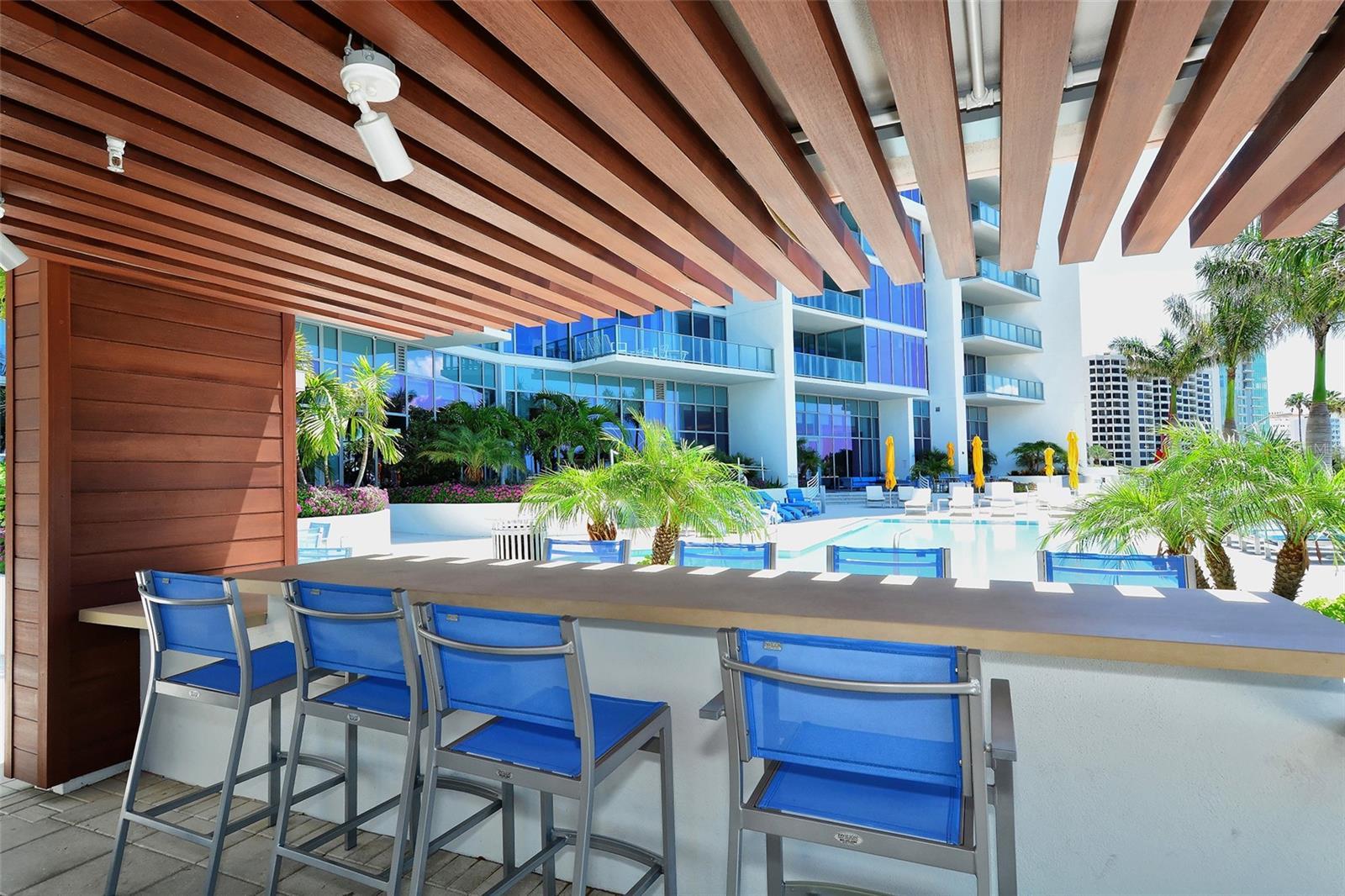 Some pictures are virtually staged. Exquisite water views from this 15th floor unit at The Vue! Ready for immediate occupancy, come and enjoy this vibrant lifestyle that downtown Sarasota has to offer. This coveted floor plan with southern exposure features floor-to-ceiling impact glass, beautiful wood floors throughout, 2 en-suite bedrooms, an office/den or a 3rd bedroom, an extra powder room, and a large laundry room. The elevator opens directly into your private foyer. As you enter, you will be amazed by the gorgeous views of Sarasota Bay, the marina, the Ringling bridge, and the Gulf of Mexico. Admire the spectacular sunsets every night from the spacious balcony that is accessible from the living room and the primary bedroom. Several great finishes include a gourmet kitchen with high-end stainless-steel appliances, granite countertops, induction cooktop, European white cabinetry, beautiful backsplash, a large island with extra sitting, and lots of storage. The primary bedroom provides a large customized walk-in closet and a second double closet. The primary bath has 2 sinks, a water closet, and a large walk-in shower. The guest suite features a bathroom with a soaking tub & shower. 2 parking spaces, and a climate control storage are included. The residents enjoy 24-hour concierge service, exclusive amenities including valet parking, sparkling lap pool & spa, an outdoor kitchen with 2 gas grills and bar, fitness center, a gorgeous club room, and a dog park with grooming station. Surrounded by restaurants, shops, theaters, the Ritz Carlton, the Westin Hotel, and the bayfront, makes The Vue the finest place to live downtown Sarasota.