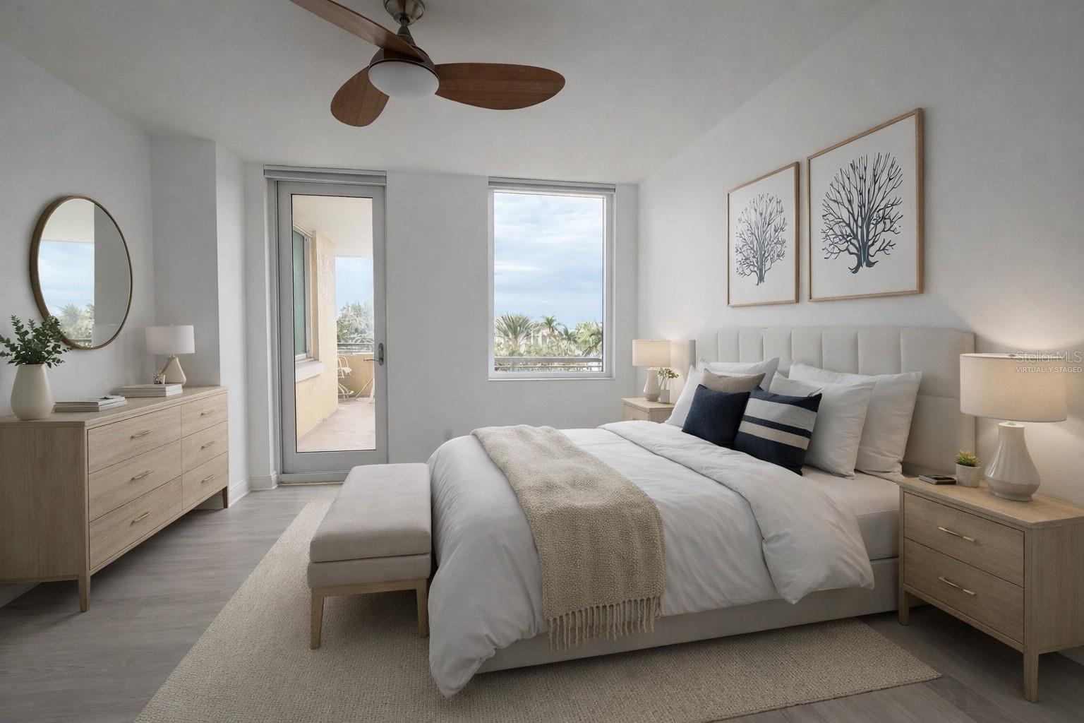 One or more photo(s) has been virtually staged. An exceptional residence offering the scale and livability of a single-family home within a full-service community. This expansive 2-bedroom, 3-bath home with den and bonus family room spans 1,911 square feet and is thoughtfully designed with high ceilings, large windows, and abundant natural light throughout. The open, flexible floor plan allows for multiple gracious living and sitting areas or the opportunity to create a third bedroom, providing rare versatility to suit an evolving lifestyle. A wraparound, west-facing balcony—accessible from both the living room and the primary suite—extends the living space outdoors and showcases water views, perfect for sunset enjoyment. The primary suite offers a serene retreat, while the additional rooms provide comfort and flexibility for work or guests. A temperature-controlled storage unit is included for added convenience. Enjoy effortless access to the third-floor amenities, including resort-style lap pool and spa, a state-of-the-art fitness center, and men and women's saunas. The building delivers an elevated downtown lifestyle with 24/7 concierge service, on-site guest parking, guest suites, wine room, library, club room, business and conference facilities, game room with pool table, and a brand-new private movie theater with stadium seating. A rare opportunity to enjoy refined, resort-inspired living where comfort, space, and lifestyle converge.