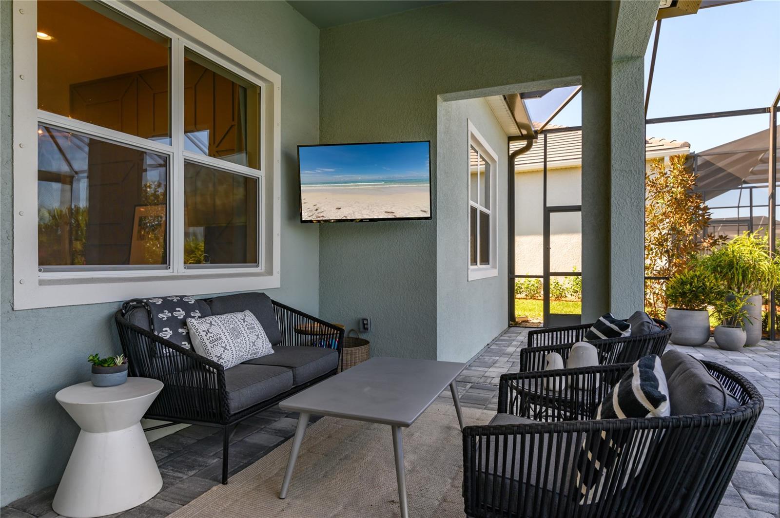 Welcome to this elegant Lakewood Ranch pool home located in the sought-after Mallory Park community. This gated neighborhood features outstanding amenities including a resort-style community pool, fitness center, clubhouse, walking trails, playground, and sports courts. Inside, the home showcases a bright, open-concept layout with a welcoming entryway, a beautifully appointed kitchen, and a comfortable living area filled with natural light. The living space sits just off the kitchen and features a large flat-screen TV and ample seating, perfect for relaxing after a day of activities. The fully equipped kitchen is stocked with upgraded stainless steel appliances and everything needed for a memorable Gulf Coast stay. The primary suite offers abundant natural light, a king-size bed, a 32-inch TV, and a spacious en-suite bathroom with a walk-in shower and double vanity. The guest bedroom features a queen-size bed and its own TV, providing comfort and privacy. The highlight of the home is the expansive, screened lanai and pool area overlooking beautiful natural Florida scenery. Enjoy your private pool and spa, unwind in the outdoor seating area, challenge friends to a game of foosball, or grill with the propane barbecue. Wi-Fi, linens, towels, and a washer and dryer are included for your convenience. Relax, unwind, and enjoy Florida living at its finest in this exceptional pool home.