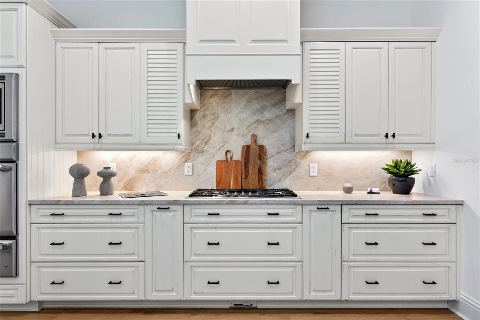 - Built-in Features, Eat-in Kitchen, High Ceilings, Kitchen/Family Room Combo, Other, Split Bedroom, Stone Counters, Thermostat, Walk-In Closet(s), Wet Bar, Window Treatments