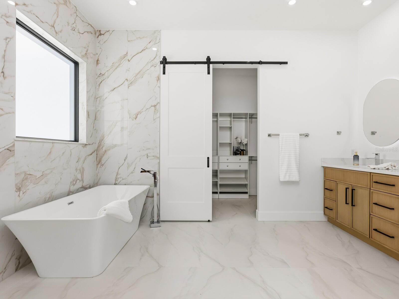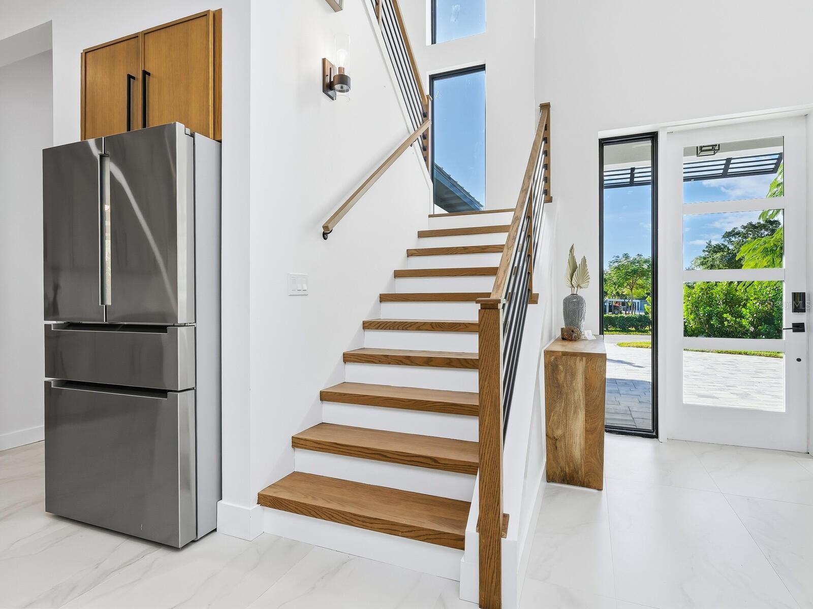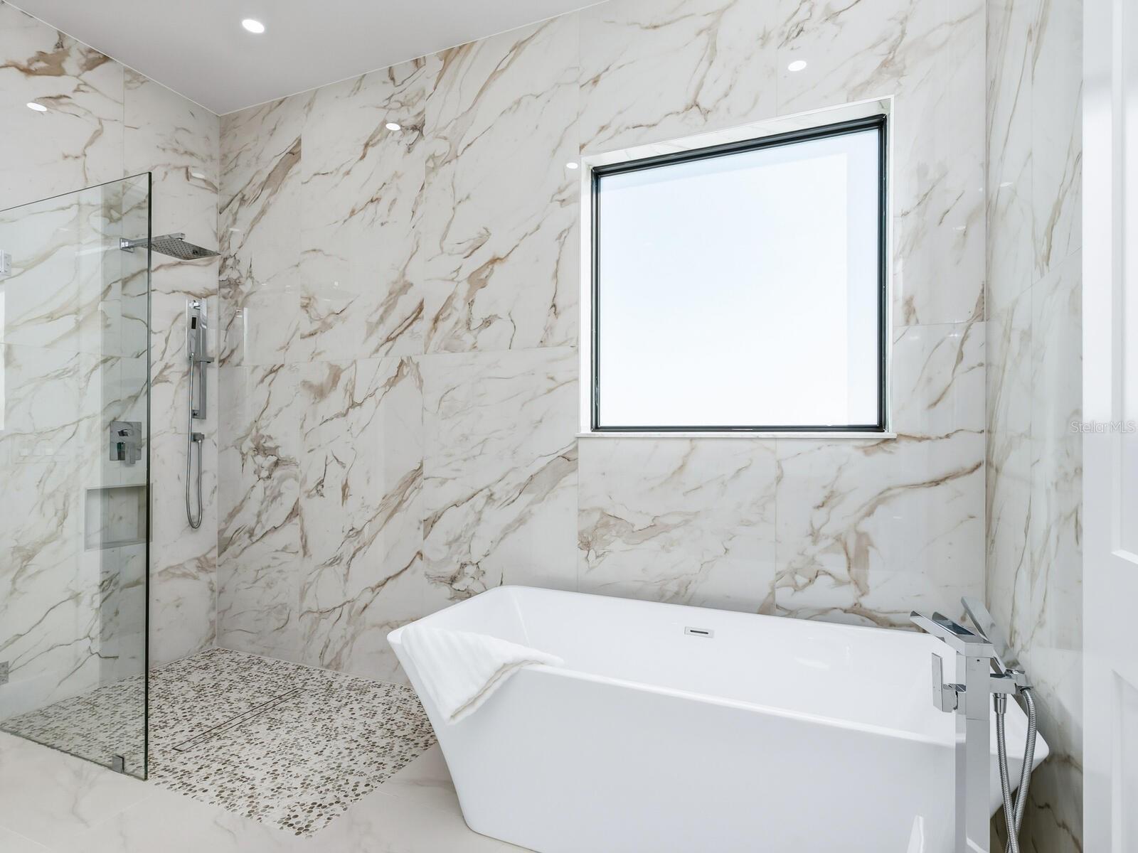In the well-established Loma Linda Park neighborhood in Sarasota, this new construction, Divald Homes custom-built two-story home offers a blend of modern design and traditional elements. The home is ideally near downtown Sarasota, Siesta Key and Sarasota Memorial Hospital, with no deed restrictions or HOA fees. The home features four bedrooms and three baths, including a spacious primary suite on the main floor. The open-concept floor plan featuring a 24-by-48-inch modern floor tile throughout, hurricane impact sliding doors and windows offers a light-filled welcoming space ideal for entertaining. The main floor includes a gourmet kitchen, dining area, living room, private den/bedroom 4, primary suite with an ensuite bath and a dedicated laundry room. The chef’s kitchen is a centerpiece, showcasing Bosch appliances, an oversized island with waterfall quartz countertop, and custom floor-to-ceiling full-overlay cabinetry in a beautiful honey-stained wood tone. The living room is highlighted by a striking tile accent wall with custom wood shelving and modern designed 42-inch linear electric fireplace. The living room opens seamlessly to the lanai, complete with an outdoor kitchen, including a gas grill, refrigerator and sink. You will also enjoy the pool with sundeck, oversized outdoor patio and a beautiful backyard with lush native plantings. A convenient pool bath offers direct access from the lanai and the private den. The dining area is elegant and inviting, featuring a statement iron chandelier and a wall of windows overlooking the backyard. Just off the kitchen, the main-floor primary suite serves as a private retreat with a luxurious en-suite bath featuring a marble stone accent wall, a large walk-in shower with seamless glass enclosure, a sculptural slipper tub, double vanity with quartz countertops, natural wood cabinetry, LED mirrors and a spacious walk-in closet with custom built-ins. The laundry room is conveniently near the oversized two-car garage with 12-foot ceilings, large windows for natural light and direct access to the side yard. Upstairs, an ornate wrought-iron and hardwood staircase leads to two additional bedrooms, a beautifully finished guest bath and a versatile flex room ideal for a game room, study or guest accommodations. This thoughtfully designed home offers refined finishes, flexible living spaces and an exceptional location, ideal for enjoying the Sarasota lifestyle.