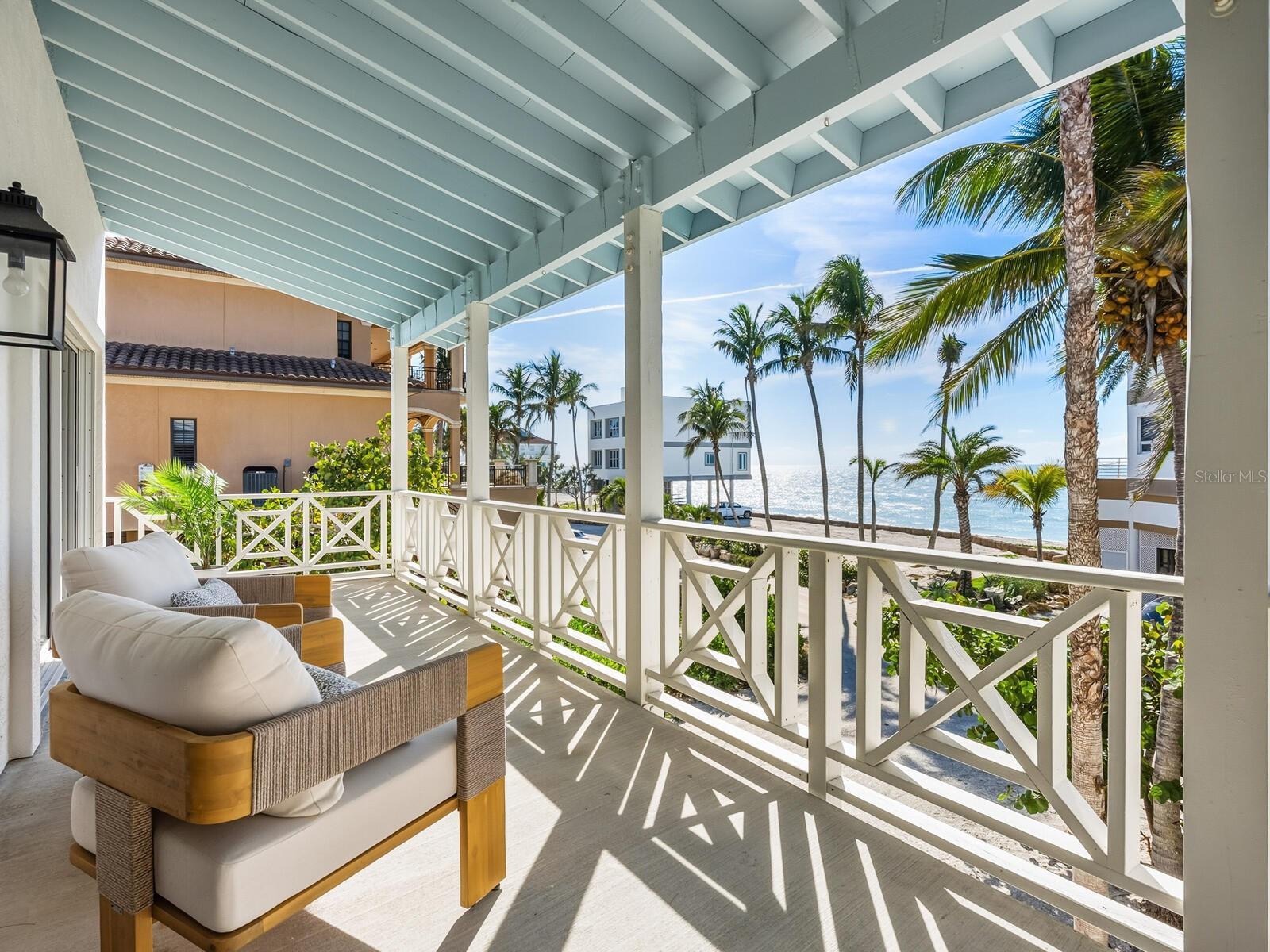 Gulf-to-Bay elegance meets relaxed coastal sophistication in this elevated, sailboat-access waterfront retreat, ideally positioned within one of Siesta Key’s most exclusive gated enclaves. Set in a rare peninsula neighborhood offering true Gulf-to-Bay living, this Caribbean-inspired residence delivers exceptional privacy, sweeping water views, and direct boating access with no bridges to the Intracoastal Waterway. With the newly reopened Midnight Pass just minutes away, access to the Gulf is effortless, making this an extraordinary opportunity for boaters and beach lovers alike. Surrounded by mature tropical landscaping and located on a quiet dead-end street, the home enjoys both Gulf views and a tranquil basin setting with a private dock. Inside, a vaulted-ceiling great room anchors the main living level, filled with natural light and framed by sliding glass doors that open to expansive covered terraces on both the east and west sides—perfect for sunrise mornings and sunset evenings overlooking the water. The open-concept kitchen is designed for entertaining and everyday living, featuring premium appliances including a Sub-Zero refrigerator and generous workspace. The primary suite is located on the main living level, offering terrace access and serene water views, while additional guest accommodations provide flexibility for family and friends. Above, a rooftop observation deck—accessible via spiral staircase—offers breathtaking 360-degree vistas spanning the Gulf, bay, and coastline, creating a truly unforgettable vantage point. Thoughtfully constructed on pilings with storm-conscious design, the home blends timeless island style with peace of mind. The ground level provides covered parking for multiple vehicles, abundant storage, and space for kayaks, paddleboards, and beach gear. An elevator shaft is already in place for future installation, and pool plans are available. With deeded beach access just steps away and a private dock at your back door, this is one of the few properties on Siesta Key where you can enjoy the beach in front and your boat behind. Beach, boating, privacy, and views converge in this exceptional offering—capturing the essence of Gulf-to-Bay living on Siesta Key. From morning experiences along the shoreline to breathtaking sunsets over the Gulf, every day on Siesta Key feels like a vacation. And when you're ready to explore beyond the island, downtown Sarasota is just a short drive away, offering world-class dining, arts and culture, including the Ringling Museum, Van Wezel Performing Arts Hall, and St. Armands Circle.