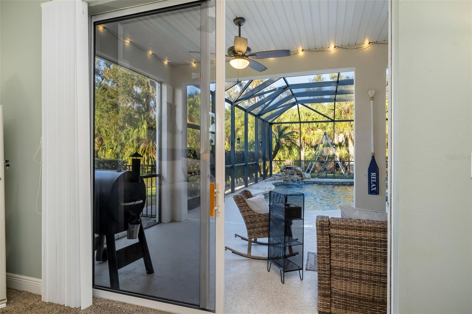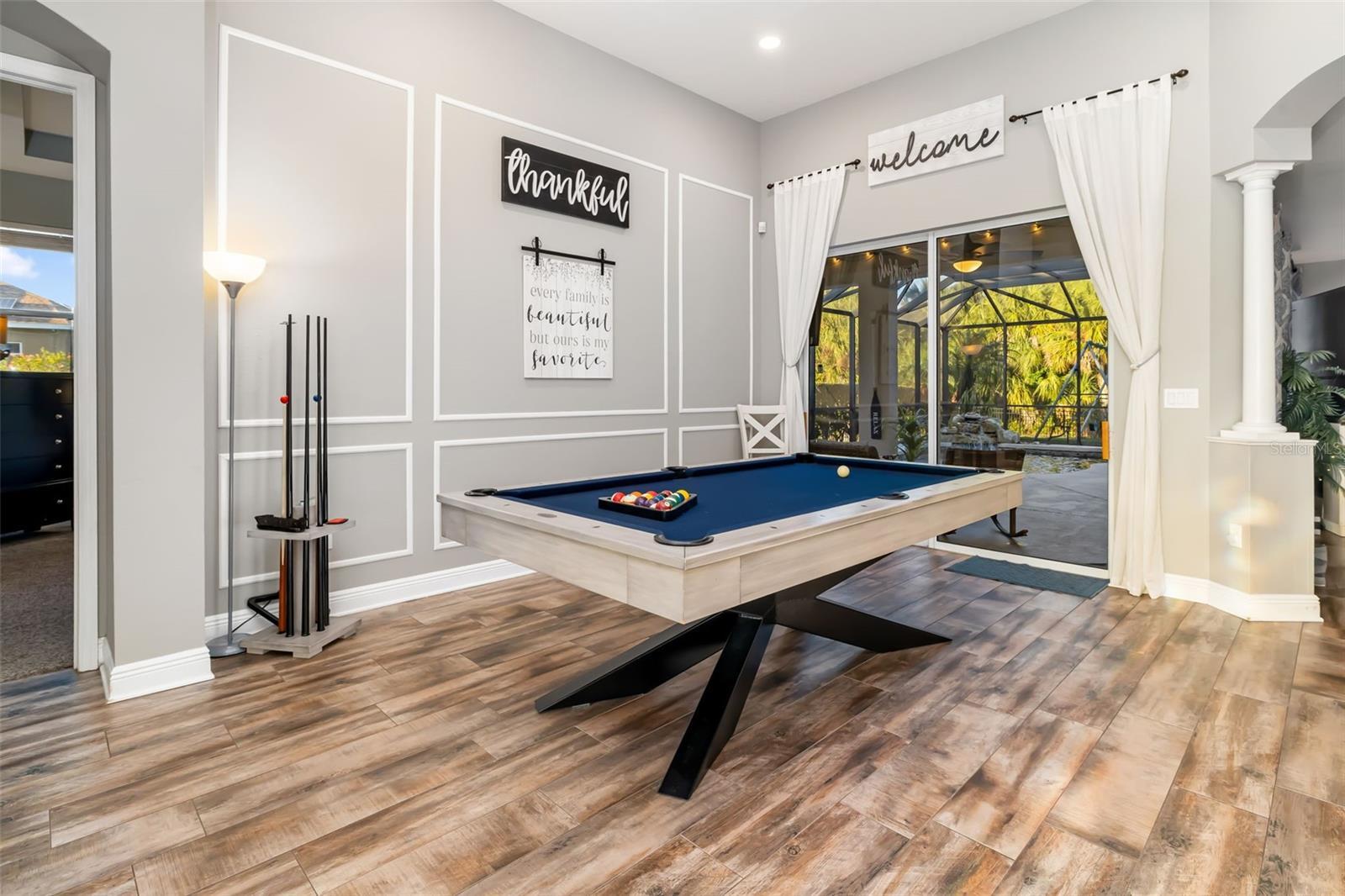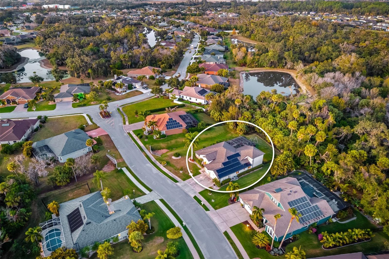 Set on more than one-third of an acre in sought-after Ancient Oaks, this spacious 4-bedroom plus den and bonus room (with closet), 3-bath pool home offers over 3,200 square feet of thoughtfully designed living space, and a 3-car garage. Timeless architectural details—including decorative moldings, columns, custom niches, and arched - transom windows—create a move-in-ready home filled with natural light. The kitchen opens seamlessly to the family room and features a center island, breakfast bar, pantry, and newly installed double oven and dishwasher, ideal for everyday living and entertaining. The primary suite serves as a relaxing retreat with dual walk-in closets, dual vanities, a garden tub, and separate shower. Multiple sliding doors throughout the home create a seamless connection between indoor and outdoor living spaces—perfect for entertaining or relaxing poolside. The screened lanai showcases a tranquil waterfall feature overlooking a natural preserve, and the fully fenced yard enhances privacy and outdoor enjoyment. Additional features/updates include a built-in sound system in the living room, dining room, and back patio - whole-house reverse osmosis system and water softener - solar panels - newly resurfaced pool deck and pool equipment - new carpet and beautiful plank tile throughout the home. Conveniently located near I-75, top-rated schools, golf courses, shopping, dining, medical facilities, and the expanding Parrish community with exciting new parks and retail.