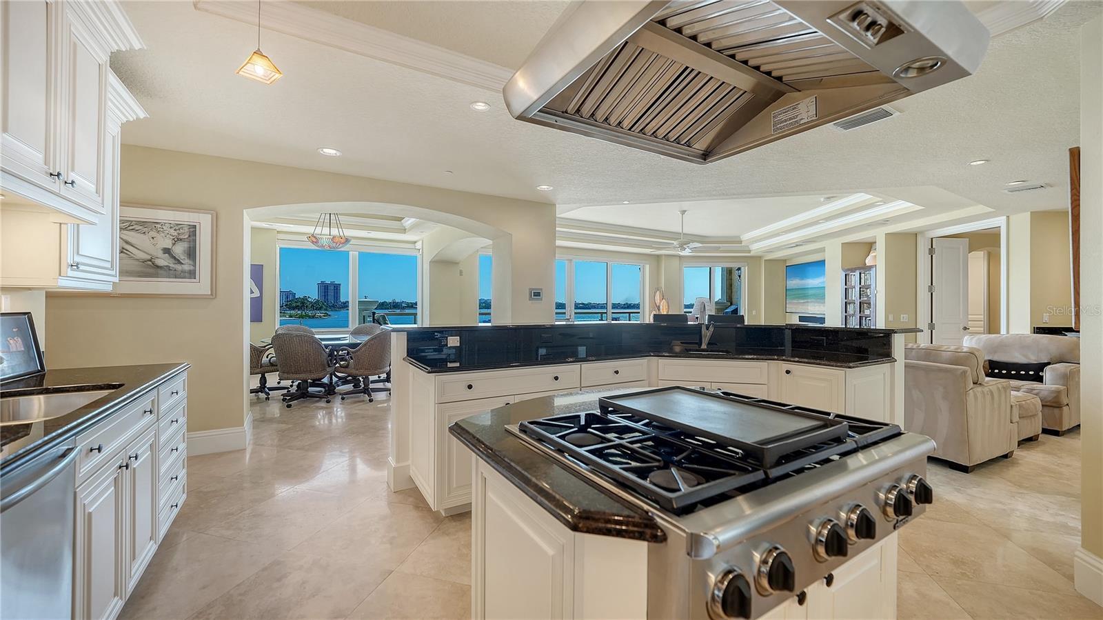 Positioned on the third floor of La Bellasara, this expansive waterfront residence offers refined living on Sarasota Bay with panoramic views of the marina, open water, and the downtown skyline. Spanning approximately 3,290 square feet of interior living space plus several generous terraces, Residence #304 delivers the scale and privacy of a single-family home within one of downtown Sarasota’s most respected boutique enclaves. A private elevator opens directly into the residence, welcoming you into a gracious foyer that leads to the Grand Salon—an impressive living and dining space framed by floor-to-ceiling glass and some 11-foot tray ceilings. Marble flooring, crown molding, gas fireplace, wet bar with wine cooler, and thoughtful architectural detailing create a timeless backdrop for entertaining and daily living, while expansive sliding doors extend the living space onto the large waterfront salon terrace overlooking the bay and marina. The kitchen is designed for both function and style, featuring solid wood cabinetry, stone countertops, a central island with breakfast bar seating, pantry storage, and premium appliances including a gas cooktop, built-in ovens, wine refrigeration, and custom shelving. The open dining room area enjoys water views, making it a natural gathering point throughout the day. The primary suite is a true retreat, offering a dedicated bayfront terrace, dual walk-in closets, and marble his and her bathrooms. Two additional bedroom suites are thoughtfully separated for privacy, each with balconies, walk-in closets and en-suite baths. The study/library (with closet) provides flexible space for a home office, quiet reading room, or fourth bedroom. Desirable conveniences to complement this perfectly placed residence include a private two-car garage, secure storage, and your own dock with lift. La Bellasara residents enjoy a gated setting with on-site management, fitness center, resort-style pool and spa, and many community amenities, all within a ten-minute walk to the heart of Sarasota’s city center. Located on coveted Golden Gate Point, La Bellasara places you moments from downtown Sarasota’s cultural and culinary scene. Enjoy nearby Marina Jack, Selby Gardens, Burns Court, The Bay Park, and the city’s acclaimed theaters, galleries, and waterfront dining. St. Armands Circle and Lido Beach are just minutes away, offering effortless access to shopping, recreation, and Gulf beaches.