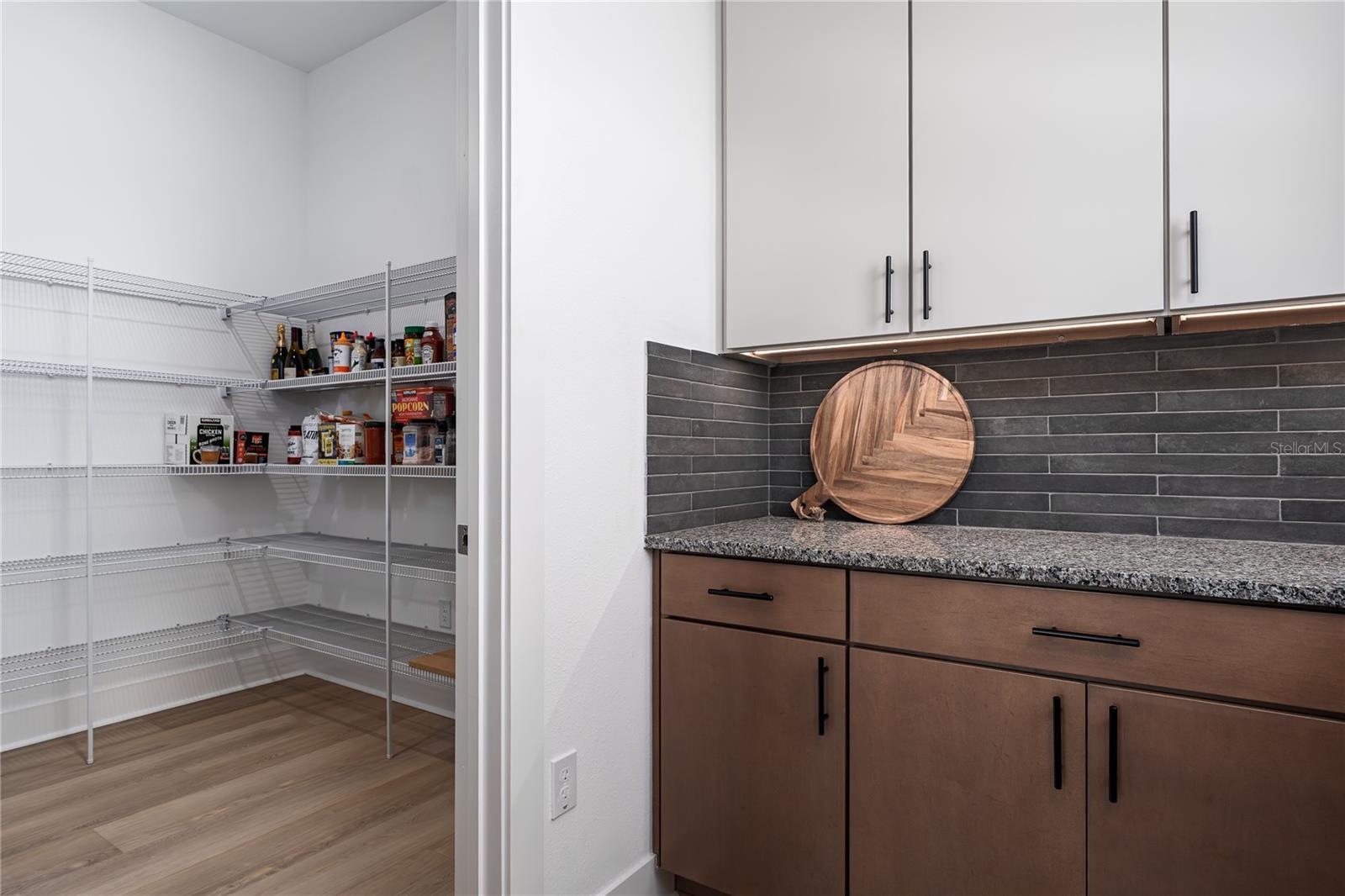 - Coffered Ceiling(s), Eat-in Kitchen, High Ceilings, Kitchen/Family Room Combo, Open Floorplan, Primary Bedroom Main Floor, Solid Wood Cabinets, Stone Counters, Thermostat, Tray Ceiling(s), Walk-In Closet(s)