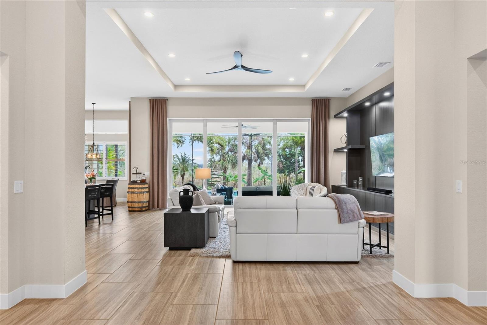 Beautifully appointed Aragon model, on a larger Estate lot, located within the sought-after Isles by Toll Brothers, this residence is perfectly positioned amid mature landscaping with tranquil sunrise and preserve views from the lanai. Offering three bedrooms, three-and-a-half baths, a den/study, and a formal dining room, the home is thoughtfully designed to balance refined sophistication with inviting comfort. A well-conceived floor plan provides exceptional privacy, with the primary suite intentionally separated from the additional en-suite bedrooms—ideal for both everyday living and hosting guests. Throughout the home, curated finishes elevate every space, including custom wall built-ins and expansive 10-foot pocket sliding glass doors that fully retract, seamlessly connecting the interior to the lanai. Additional upgrades include 13 ft ceilings, wood shutters, hurricane-impact glass, and meticulous attention to detail at every turn. The kitchen serves as a striking centerpiece, anchored by an expansive quartz island and complemented by decorative, soft-close cabinetry—beautifully suited for both entertaining and daily use. The primary suite is a true retreat, featuring dual walk-in closets, sliders to the lanai, and a generously scaled, spa-inspired en-suite bath. Each additional bedroom offers its own private en-suite bath, ensuring comfort and convenience for family and visitors alike. Seamlessly extending the living space outdoors, the expansive lanai is outfitted with a thoughtfully designed outdoor kitchen complete with a beverage station and grill. As evening falls, unwind in the spa and take in the peaceful sounds of nature from the preserve—creating a serene backdrop for both relaxation and entertaining. Luxurious living in the gated, maintenance-free community of The Isles, nestled between The Lake Club and Concession, at its best! The Isles at Lakewood Ranch offers many amenities such as a 65,000 square foot clubhouse, tennis and pickleball courts, basketball court, playground, state of the art fitness center and yoga room, resort-style swimming pool and spa, boardwalk and fishing pier, and a playground and dog park. Centrally located, just off I-75 and a short drive to the award-winning beaches of Siesta Key, Lido, & Anna Maria. This move-in ready home has all the amenities that one would want in this 2025 Best-Selling Multigenerational Planned Community in the Nation.