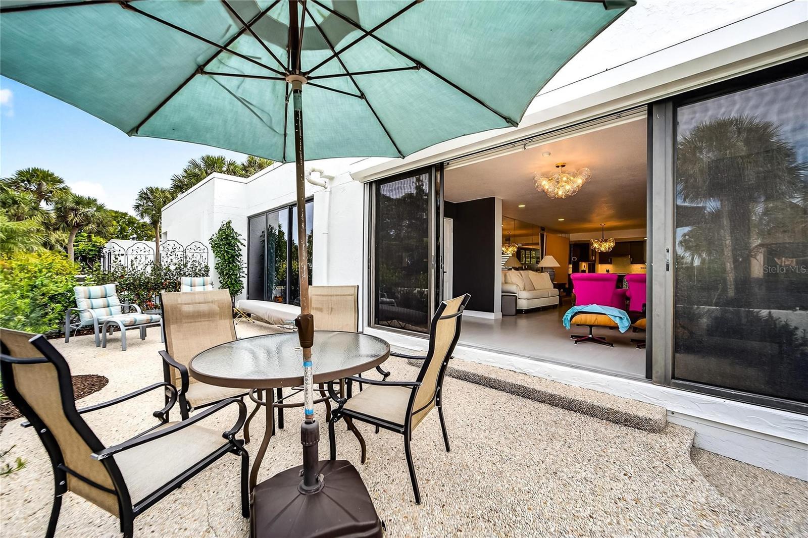 - Awning(s), Courtyard, Permeable Paving, Private Entrance, Sidewalk, Sliding Doors, Storage, Tennis Court(s)