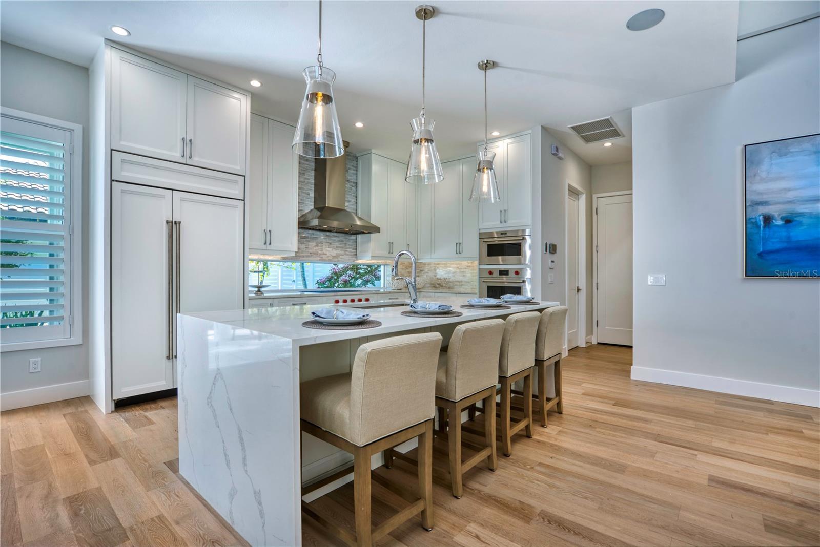 Under Construction. Built safely and securely ten feet above the island’s flood plain, 5103 Windward is unparalleled new construction with saltwater boating access to the Intracoastal Waterway and Gulf beyond. Along the water’s edge, this homesite spans nearly 1/3 acre on the Grand Canal with 90 ft. of new seawall. The central Siesta Key location makes getting to the spectacular white sand beaches and charming Siesta Village easy and convenient. The free-flowing plan, offering 3,034 sq. ft. of open living, will seduce you with its inviting atmosphere wrapped in casual elegance and modern sophistication. With plenty of natural light, the great room boasts double-height ceilings adorned with rich architectural detail, an elaborate floor-to-ceiling fireplace wall, and see-through views to the expansive outdoor space and coveted canal setting. Beyond the great room’s glass doors, an entertaining lounge with wood ceiling accents, a professional grill station, and a heated pool/spa await your plans for spending cherished time with family and friends. As evening approaches, night lighting transforms the beautiful backyard and creates a timeless ambiance that encourages relaxation and reflection. A gorgeous kitchen is enhanced with an abundance of amenities including a premium Sub-Zero and Wolf appliance package, stone counters, stylized fixtures and finishes, a walk-in pantry, and adjoining laundry. The formal dining room features a built-in buffet and French doors leading to a brick paver patio, making it a wonderful spot for dining alfresco under the stars. The bonus room, with wet bar and pool bath, features two walls of glass sliders showcasing the extensive outdoors and picturesque water views. The primary suite is an oasis of serenity with an office outfitted with built-ins, a generous wardrobe for two, and an exquisite bath intended to pamper and spoil with a free-standing tub, a frameless glass shower with rain head, separate vanities with stone tops, and a water closet. Two additional en-suites offer plenty of room to unwind and rejuvenate in comfortable privacy. A brick paver drive, a 3-car garage, professional landscaping with timed irrigation, eye-catching curb appeal, and other notable customizations inside and out, complete this magnificent waterfront home. This fresh new residence, designed by the award-winning team at Allegra Homes, has been artfully designed and crafted to offer the highest quality to those who live here. An exciting opportunity to make this island paradise yours!