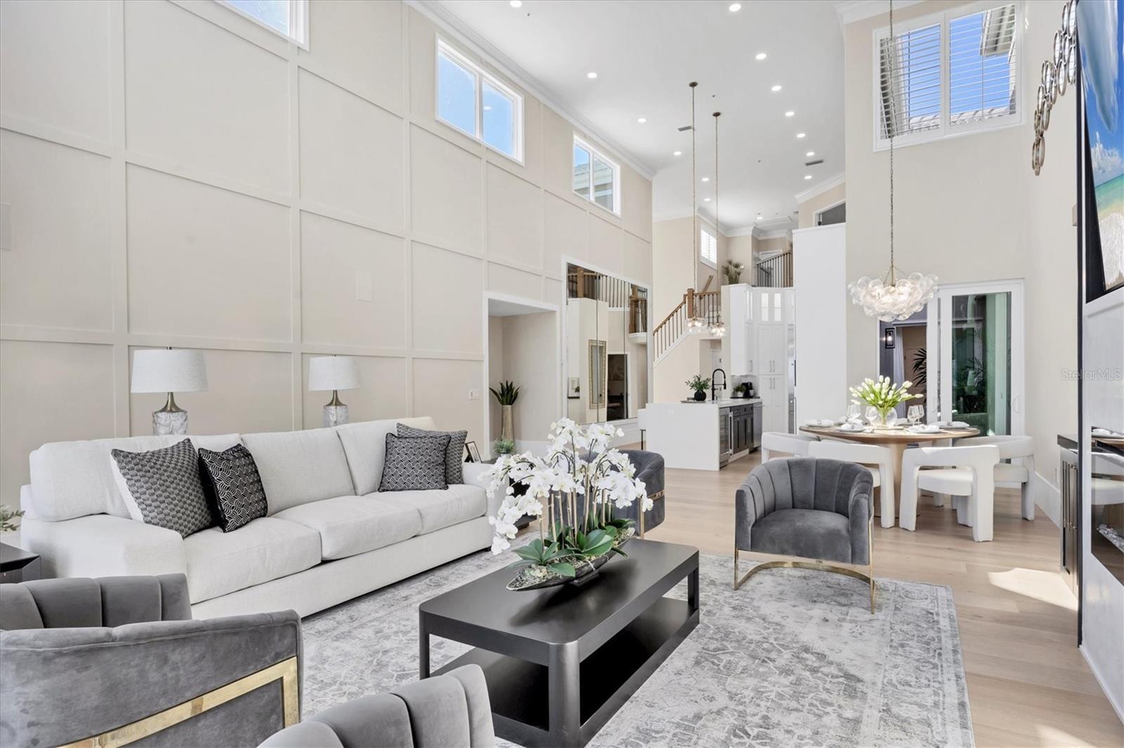 Under contract-accepting backup offers. This spectacular direct bayfront residence is offered fully furnished and showcases a thoughtful, top-to-bottom transformation embodying refined coastal luxury. With panoramic views across Sarasota Bay and a deep-water dock equipped with a lift, this four-bedroom home is a true boater’s retreat, offering effortless access to the Bay and the Gulf of Mexico beyond. Every detail has been carefully curated, beginning with new oak hardwood flooring throughout and impact-rated windows and sliding glass doors that bathe the interiors in natural light. Recent enhancements include freshly painted interiors and exterior, a newer roof (2022), and fully updated electrical and plumbing systems—providing both peace of mind and modern efficiency. Spanning nearly 3,200 square feet, the open-concept living area is crowned by soaring cathedral ceilings, creating a sense of volume and airiness. A dramatic fireplace flanked by custom built-in shelving anchors the space, while floor-to-ceiling glass sliders open seamlessly to the expansive bayfront pool deck, blurring the line between indoor and outdoor living. The chef’s kitchen is a showpiece, designed for both beauty and function. Highlights include a waterfall-edge island with bar seating, quartz countertops, brand-new high-end appliances, custom shaker cabinetry with glass accents, a designer tile backsplash, and elegant pendant lighting—perfect for entertaining or everyday enjoyment. The reimagined two-story floor plan places the primary suite in a coveted bayfront position on the main level, with sliding glass doors opening directly to the patio and water beyond. The spa-inspired en-suite bath features a luxurious soaking tub, glass-enclosed shower, and contemporary finishes. A secondary guest suite and a versatile bedroom—currently styled as a den with dual closets—complete the main level, offering flexibility for guests, work, or relaxation. Upstairs, an additional private guest suite provides serene water views and exceptional privacy for overnight visitors. Outdoor living is equally impressive, featuring a brand-new summer kitchen, newer heated swimming pool, and an expansive pavered deck ideal for entertaining or savoring bay breezes at sunset. A walk-down leads to the private dock, where direct deep-water access awaits Located within the gated enclave of Corey’s Landing in the highly desirabe Bay Isles community, residents enjoy a maintenance-free lifestyle with exceptional amenities. Just steps from the home are community tennis courts, while across the street, a heated pool and spa offer a perfect gathering place for neighbors and friends. Owners also enjoy PRIVATE ACCESS TO THE BAY ISLES BEACH CLUB, where miles of pristine Gulf-front beach are just a bike ride or leisurely walk away. World-class dining, boutique shopping, and cultural attractions are all close at hand, with St. Armands Circle, Lido Beach, and downtown Sarasota only minutes away. This is a rare opportunity to experience the very best of bayfront living on Longboat Key—where luxury, lifestyle, and location converge.
