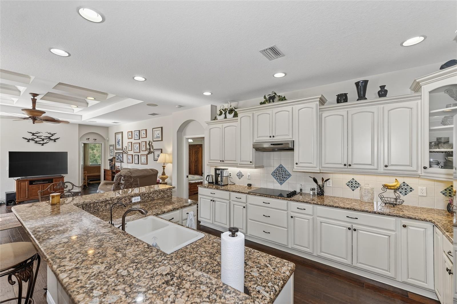 - Ceiling Fans(s), Coffered Ceiling(s), Crown Molding, High Ceilings, Solid Wood Cabinets, Split Bedroom, Stone Counters, Tray Ceiling(s), Walk-In Closet(s)
