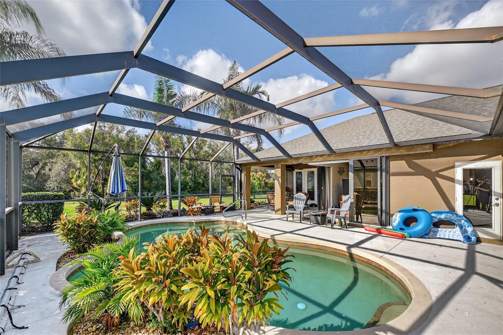 Welcome to 2006 148th Ct E, Bradenton, FL 34212, a beautifully maintained home located in the highly sought-after Mill Creek community—where space, privacy, and Florida living come together seamlessly. Set on a quiet street, this home offers exceptional upgrades and peace of mind. From the moment you arrive, you’ll notice the inviting curb appeal, enhanced by a freshly painted exterior (2025) and a brand-new roof, delivering both style and long-term durability. Step inside to discover light-filled living spaces designed for effortless entertaining and everyday comfort, all protected by hurricane-impact windows for added safety and energy efficiency. The scraped hickory wood floors lead to the kitchen and family room, the heart of the home flows naturally into the outdoor living area through the "disappearing corner" sliding doors, where your heated salt water pool takes center stage—perfect for year-round enjoyment, whether hosting gatherings or relaxing in total privacy. The fully fenced backyard provides an ideal setting for pets, play, and outdoor entertaining. Key systems have been thoughtfully updated, including the air conditioning system replaced in 2020, offering efficiency and reliability for years to come. Flexible living areas allow room for a home office, guest space, or hobby room, while the private bedroom layout creates a peaceful retreat at the end of the day. Ideally located in Mill Creek, residents enjoy a serene, established neighborhood with NO CDD and easy access to shopping, dining, top-rated schools, golf, and major commuter routes—all while maintaining a sense of privacy and space that’s hard to find. Move-in ready, loaded with high-value upgrades, and priced to attract serious interest—this is the home you have been waiting for! Schedule your private showing today and experience why 2006 148th Ct E stands out as an exceptional opportunity.